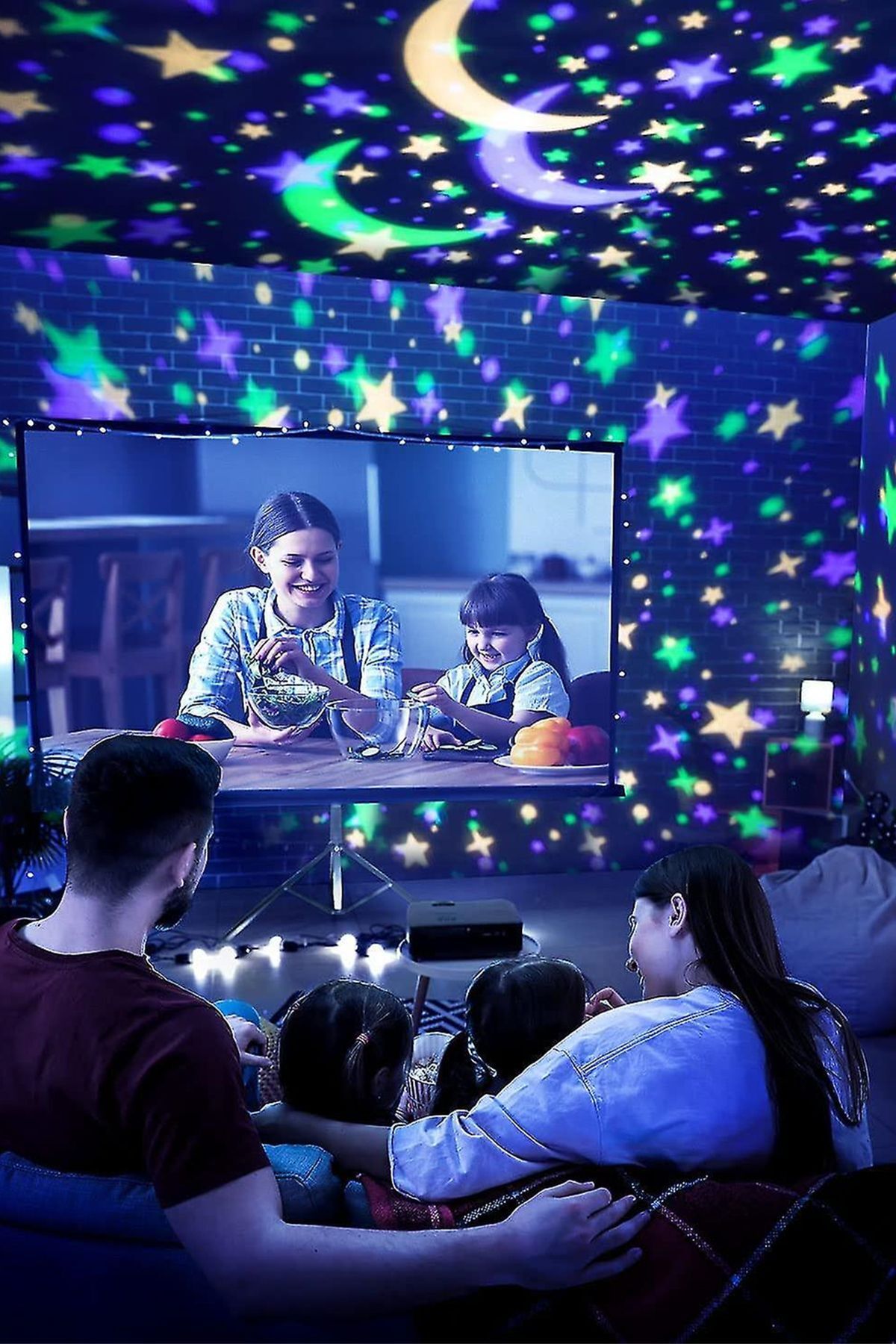 Çok renkli yanan ve dönebilen başlıklı projektör gece lambası ile siz de çocuğunuzun (ya da içindeki çocuğu öldürmeyen büyüklerin) odalarını aydınlatma dönme özelliği mevcuttur.; İster dönsün ister sabit dursun yansıtması tüm odayı kapsar, loş bir ortam oluşur.; Biri gün ışığı rente yansıtır, ikincisi renkli ışık yansıtır.; Her bastığınızda renk değiştirir.; Üçüncü tuş dönme özelliğini açıp kapatır.; Renkli yansıtma tuşu 8 farklı ışık modunda yansıtmaktadır.; Kalem pille çalışmaktadır Çocuklarınızın uyumasını kolaylaştırır.; Döner yapısı sayesinde odanızı aydınlatır.; 4 adet AA pil veya içerisinde bulunan USB kablo ile çalışır.; Açma kapama butonu bulunmaktadır.; PİLLER DAHİL DEĞİLDİR!
