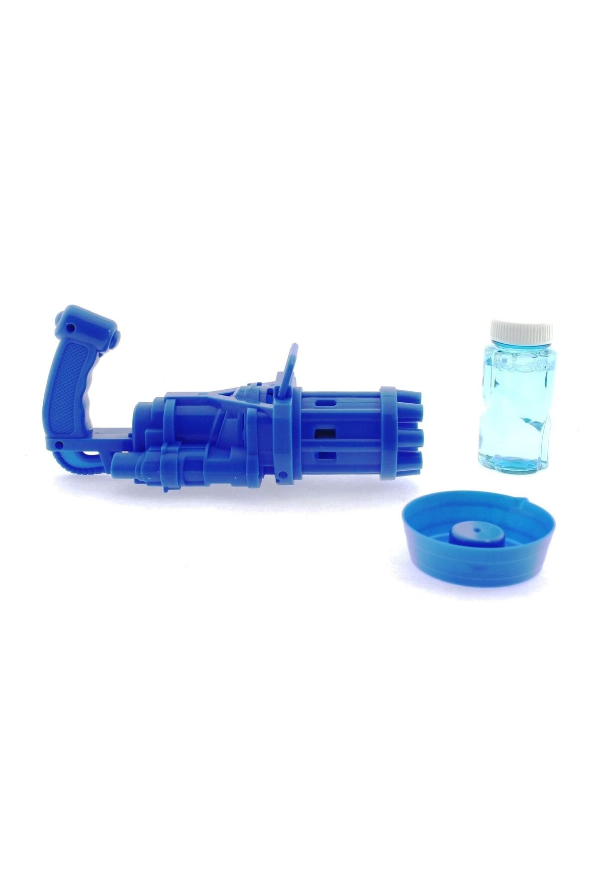 Pilli Mavi Köpük Balon Tabancası Kutu içerisinden 1 aden balon suyu ve suyu içine koymak için su haznesi çıkmaktadır. Tabancanın uzunluğu 19 cm dir. 8 adet balon çıkışı bulunur. Sıvıyı su haznesine doldurup tabancanın ucunu suya batırıp çıkartın ve tetiğe basın. 3 adet AA pil ile çalışır. Piller dahil değildir.