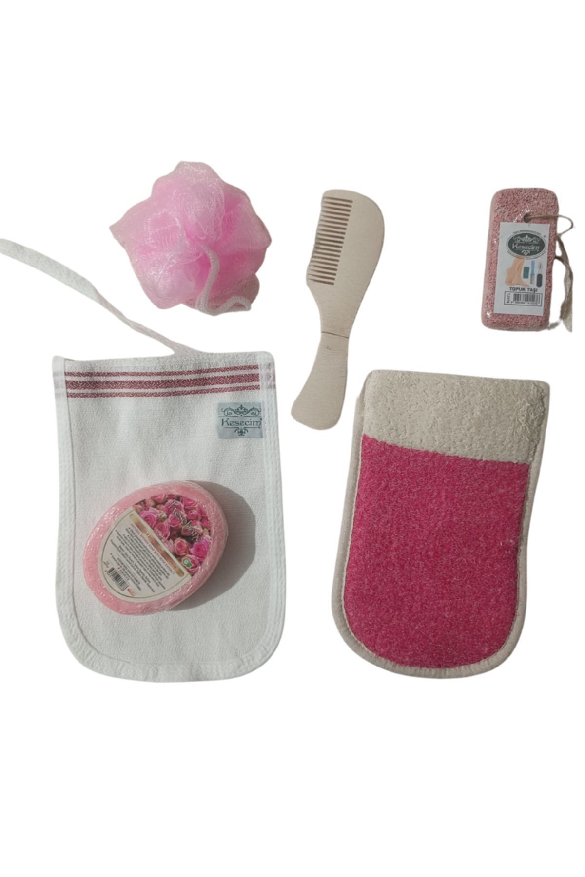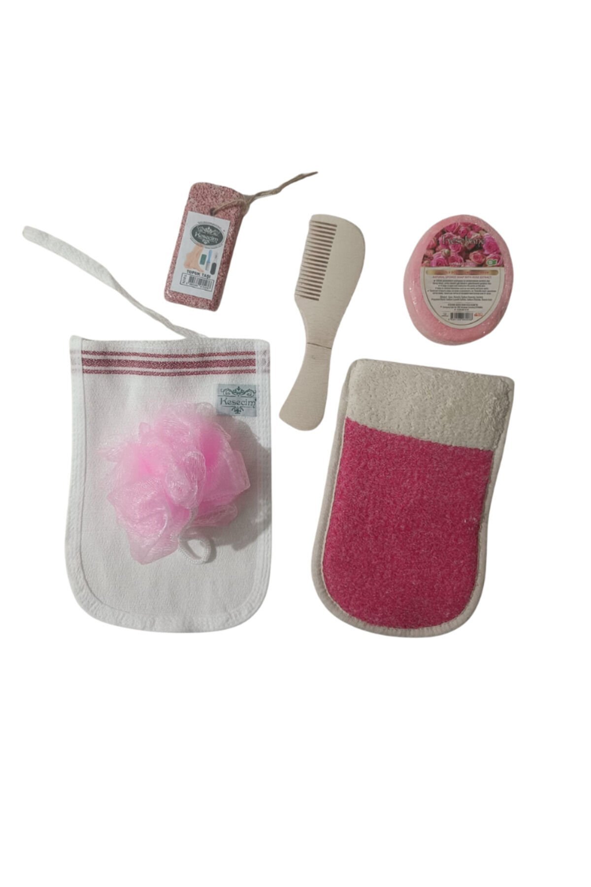Polyester Pamuklu Eldiven,kese,süngerli Sabun,banyo Lifi,ahşap Saç Tarağı,topuk Taşı 6'lı Banyo Set