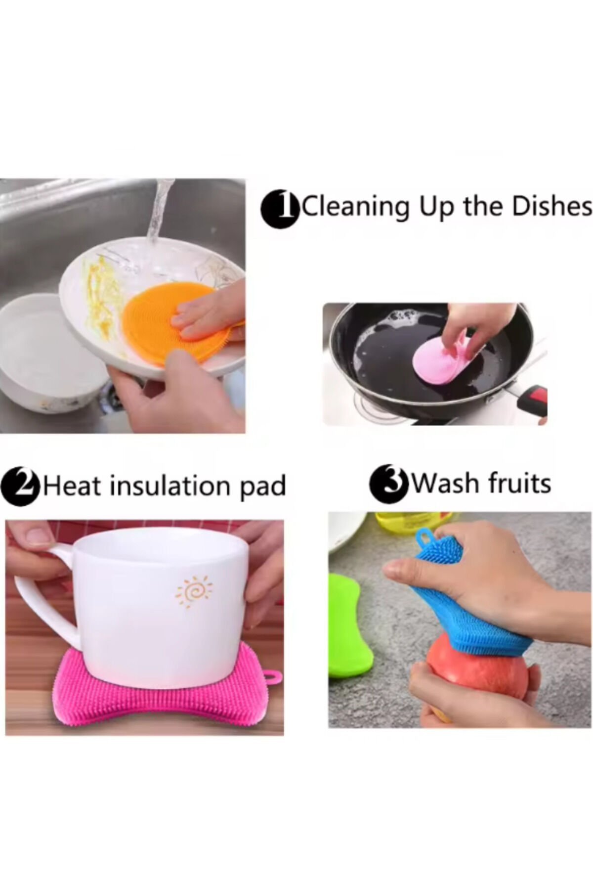 Pratik 2'li Silikon Tükenmeyen Bulaşık Yıkama Süngeri | Bulaşık Fırçası Tava Tutucu Sebze Temizleme