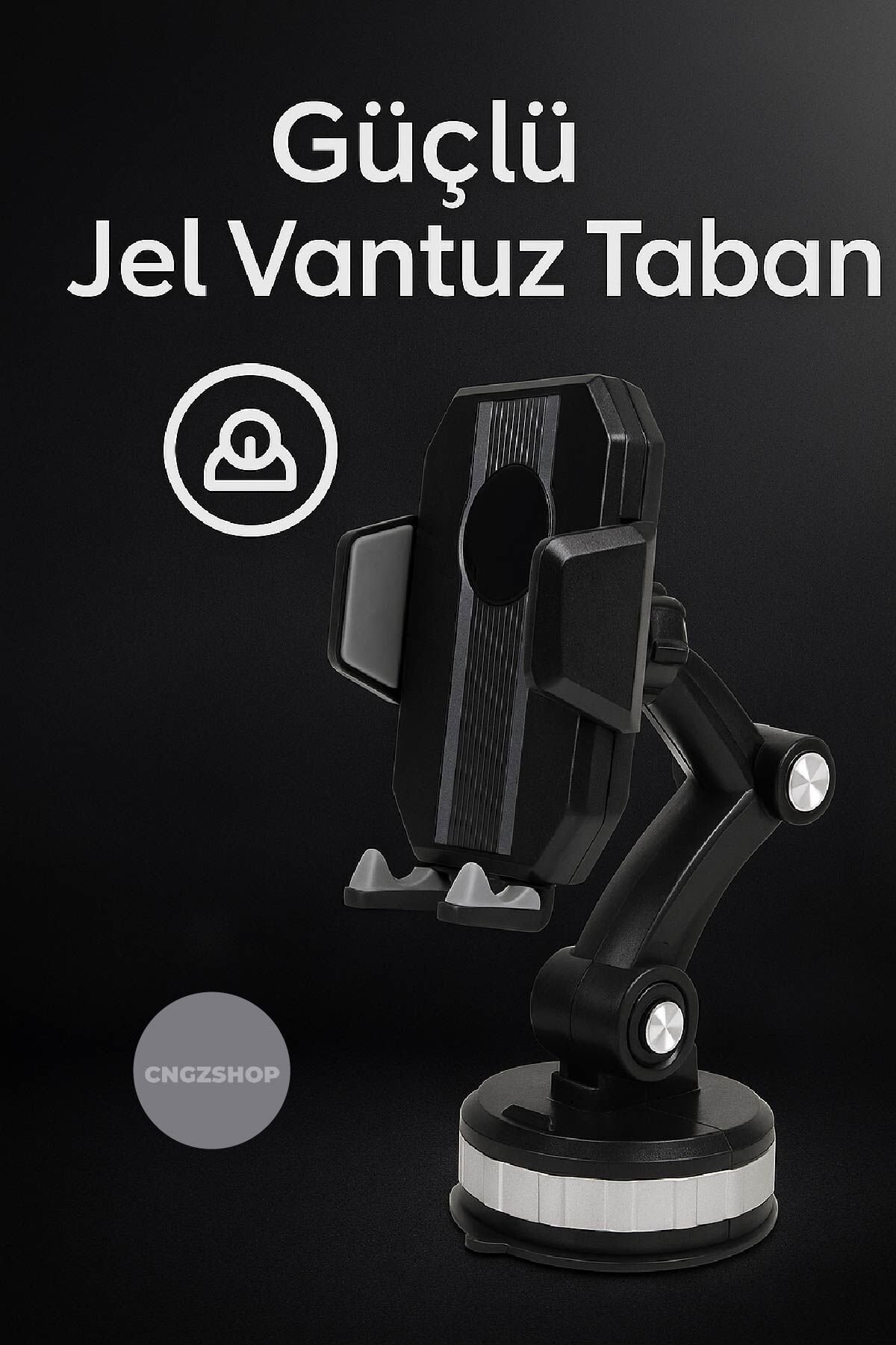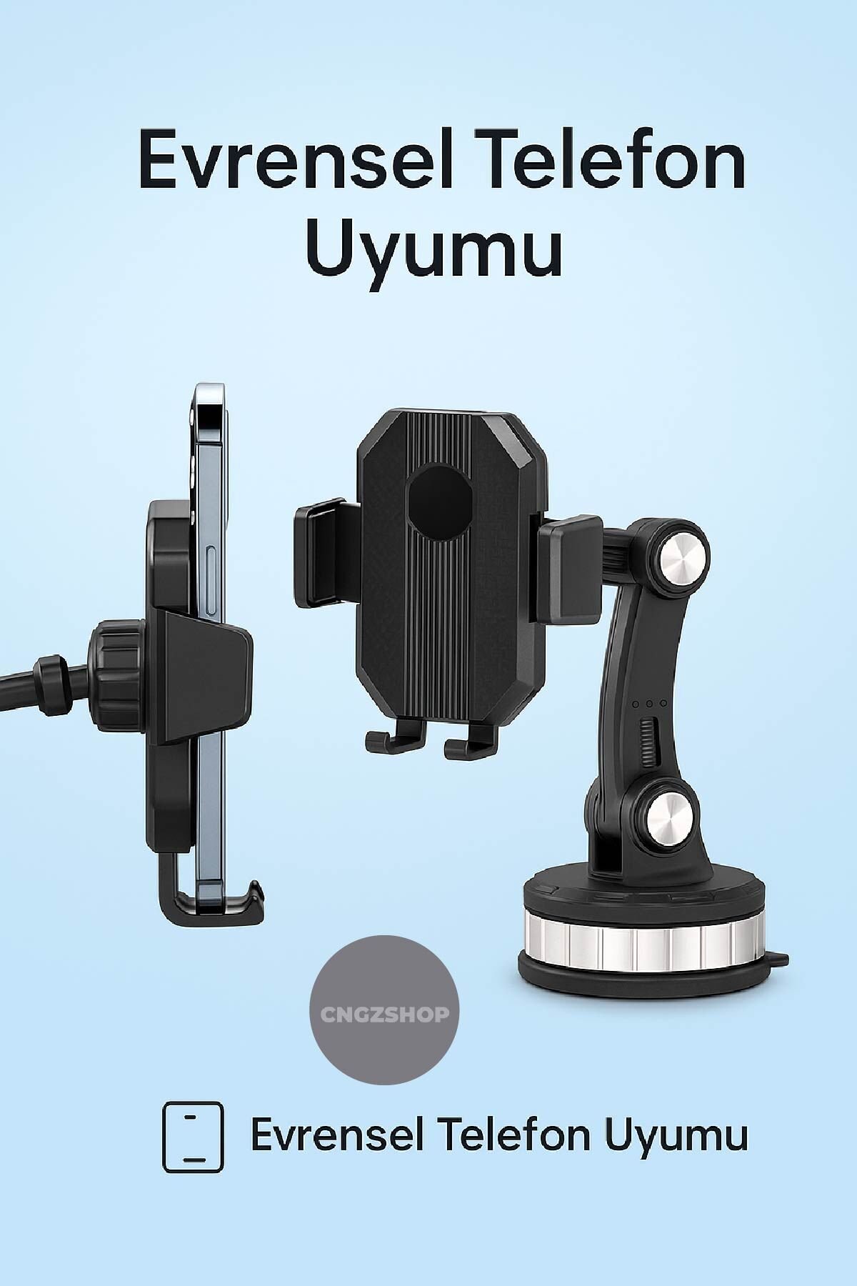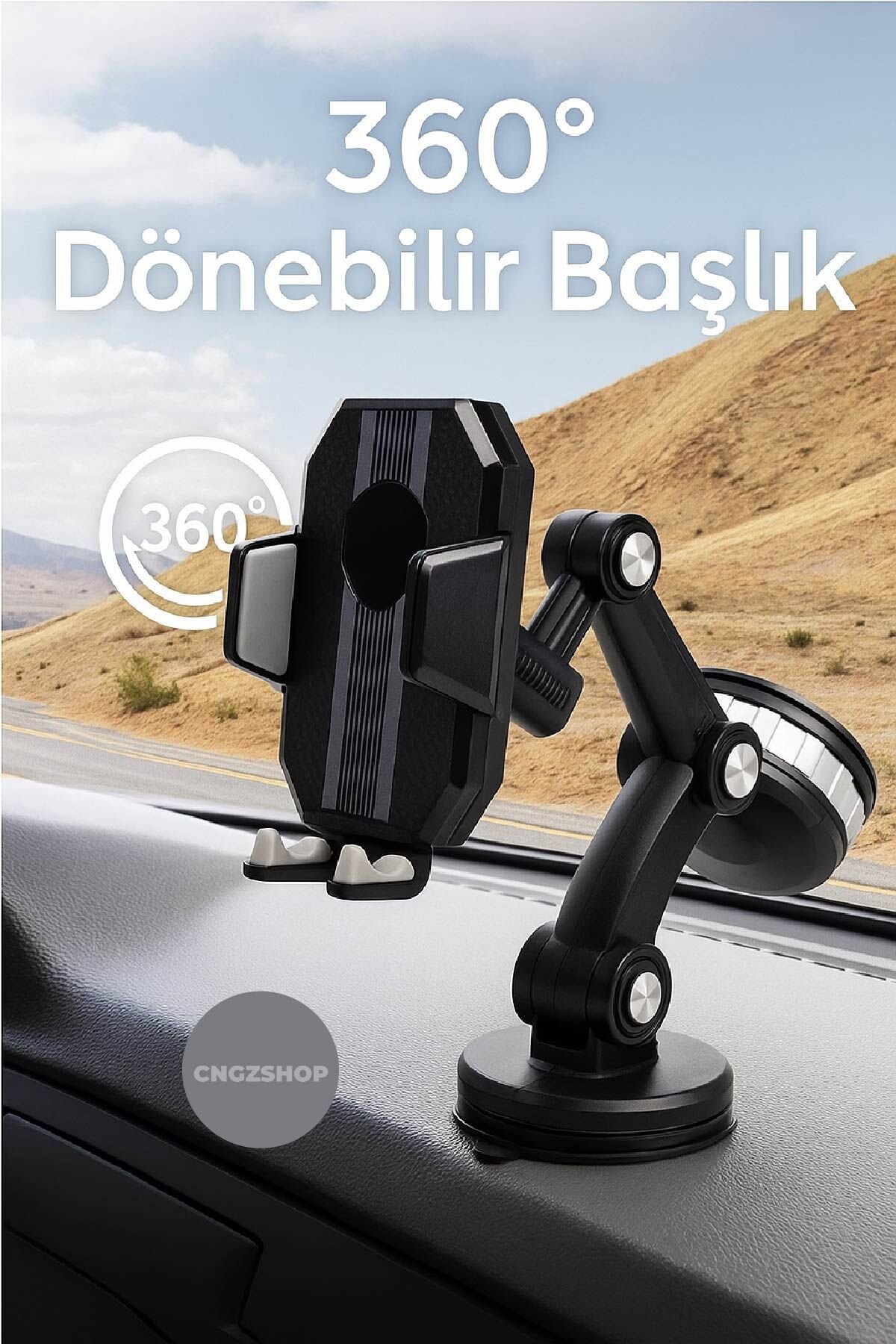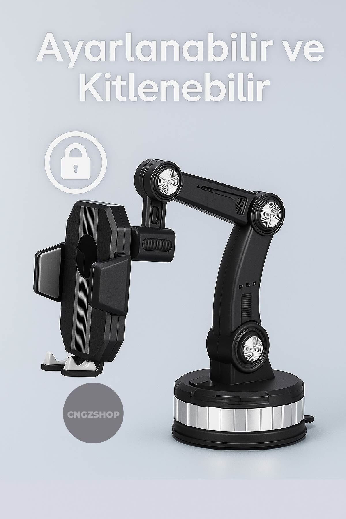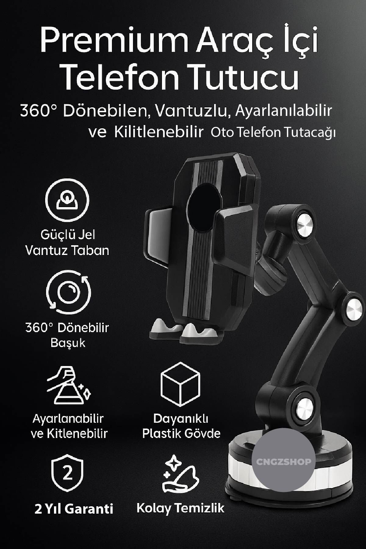 Premium Araç İçi Telefon Tutucu | 360° Dönebilen, Vantuzlu, Ayarlanabilir ve Kitlenebilir Oto Telefon Tutacağı