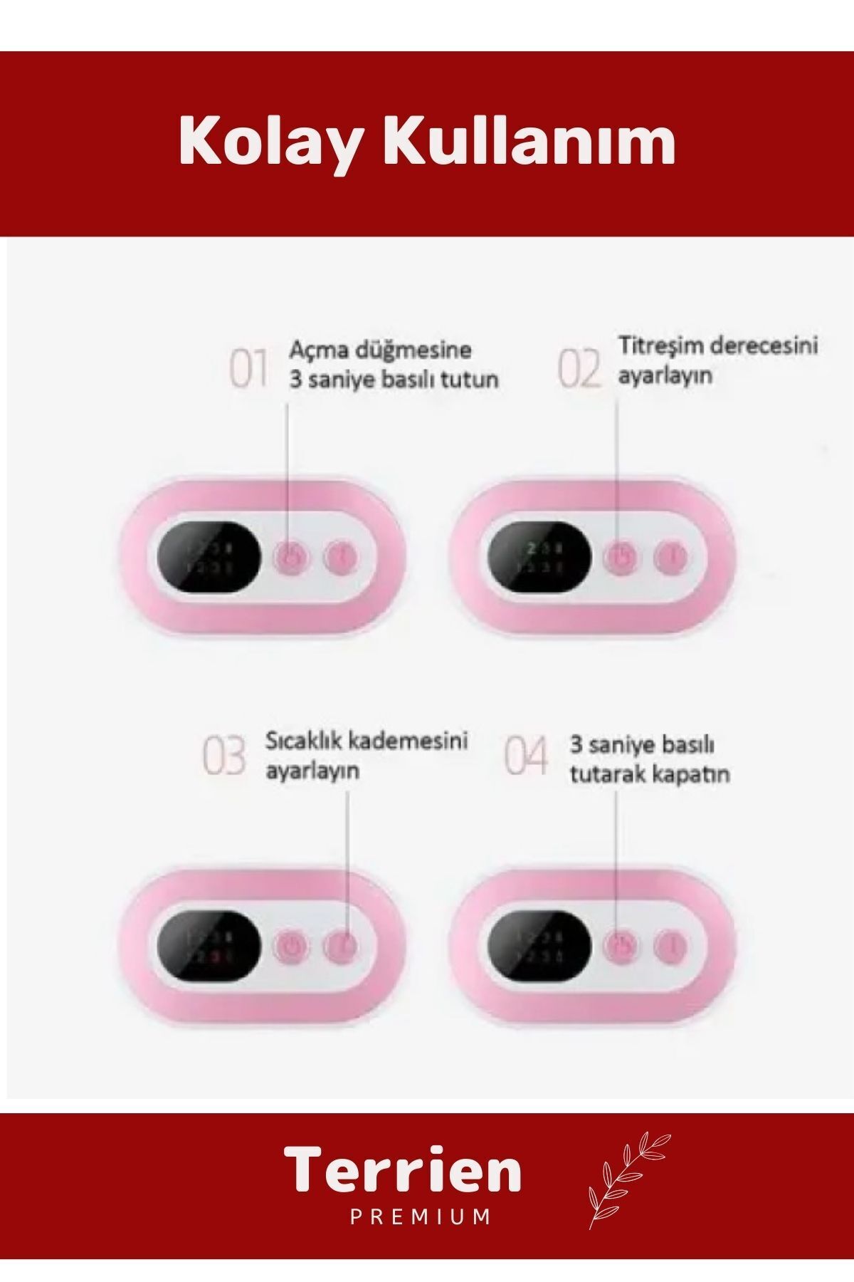 Premium Seri dijital özel gün kemeri ; Özel gün kemeriyle regl ağrılarınıza son verin.; ; Sıcaklık ayarı ile karnınızı ısıtır ve adet sancısını tedavi eder.; ; Titreşim masajı özelliği ile regl ağrınızı iyileştirir.; ; Bel, sırt ve kas ağrılarınızı masaj yaparak tedavi eder.; ; Sindirime yardımcı olur, hazımsızlığa iyi gelir.; ; Doğum sonrası iyileşme sürecinde yardımcı olur.; ; Sıcak su torbasını unutun, dökülme, yakma riskleri olmayan, tamamen güvenli yeni teknoloji.; ; ; Paket İçeriği1 adet dijital özel gün kemeri ;