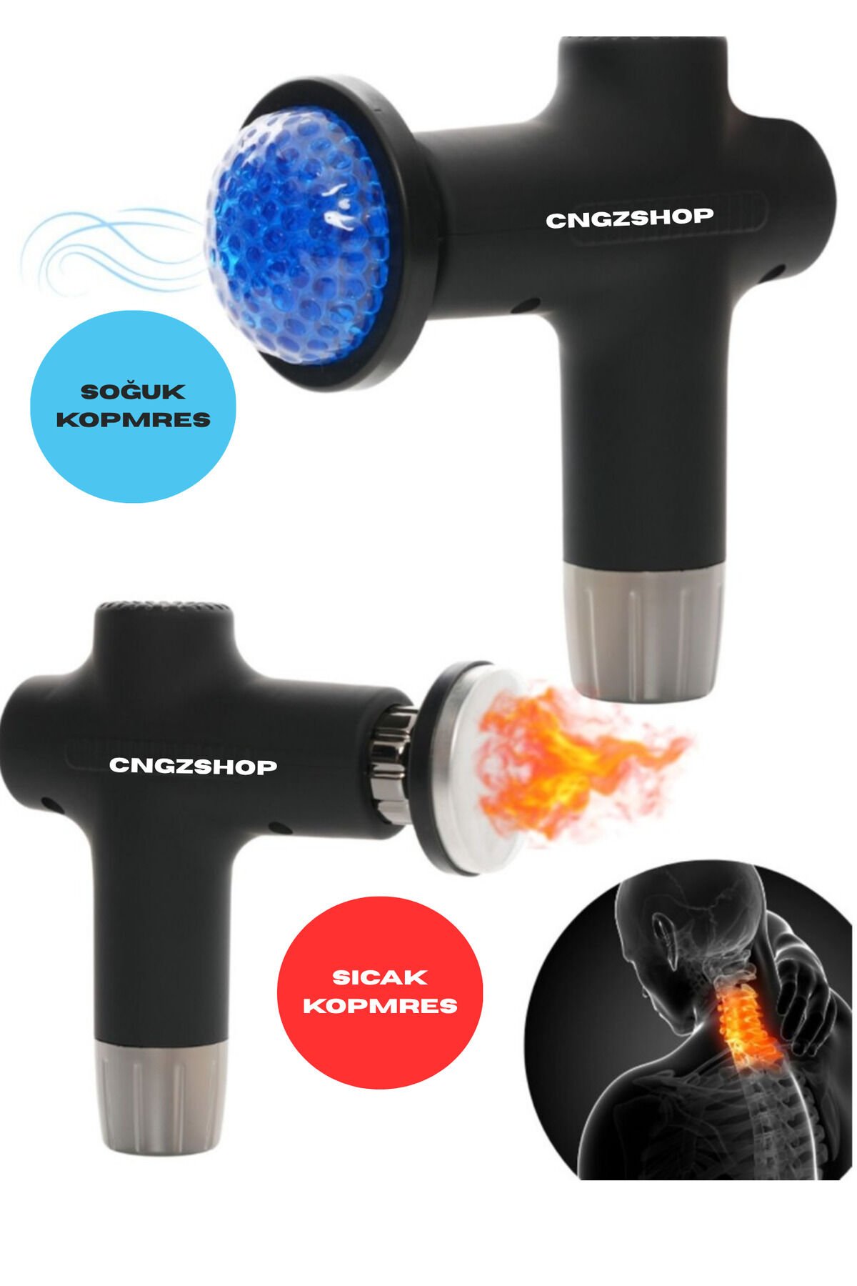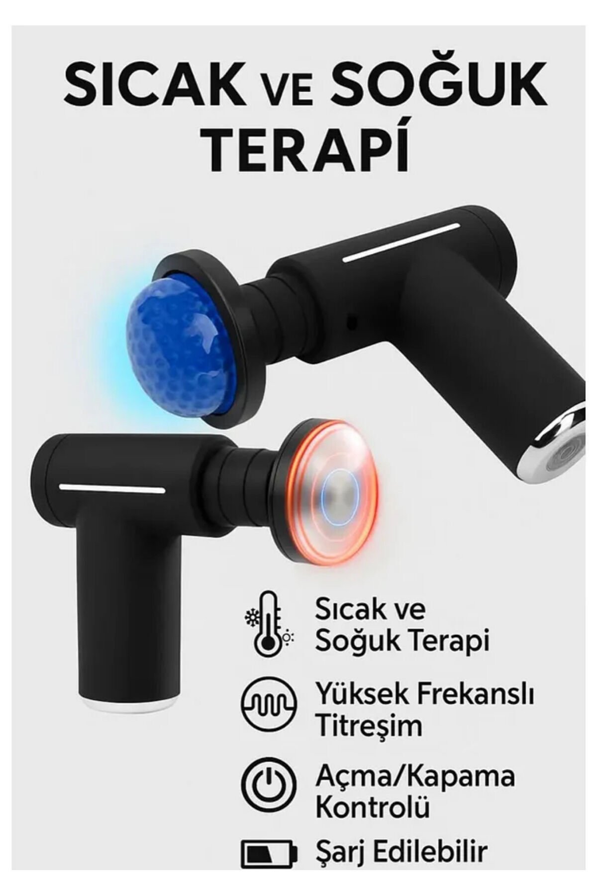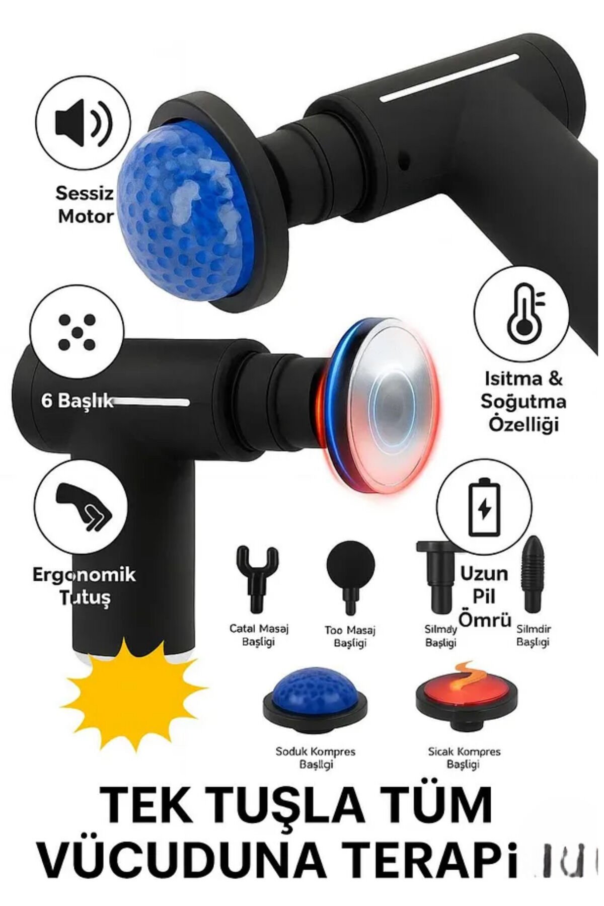 Şarjlı 6 Başlıklı Isıtmalı Sıcak ve Soğuk Terapili Sporcu Masaj Tabancası Derin Vücut Masajı
