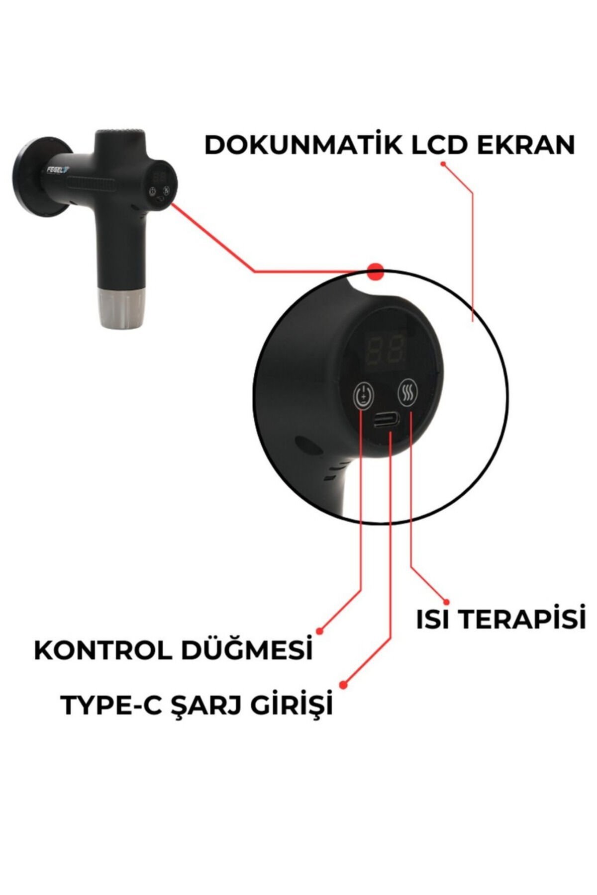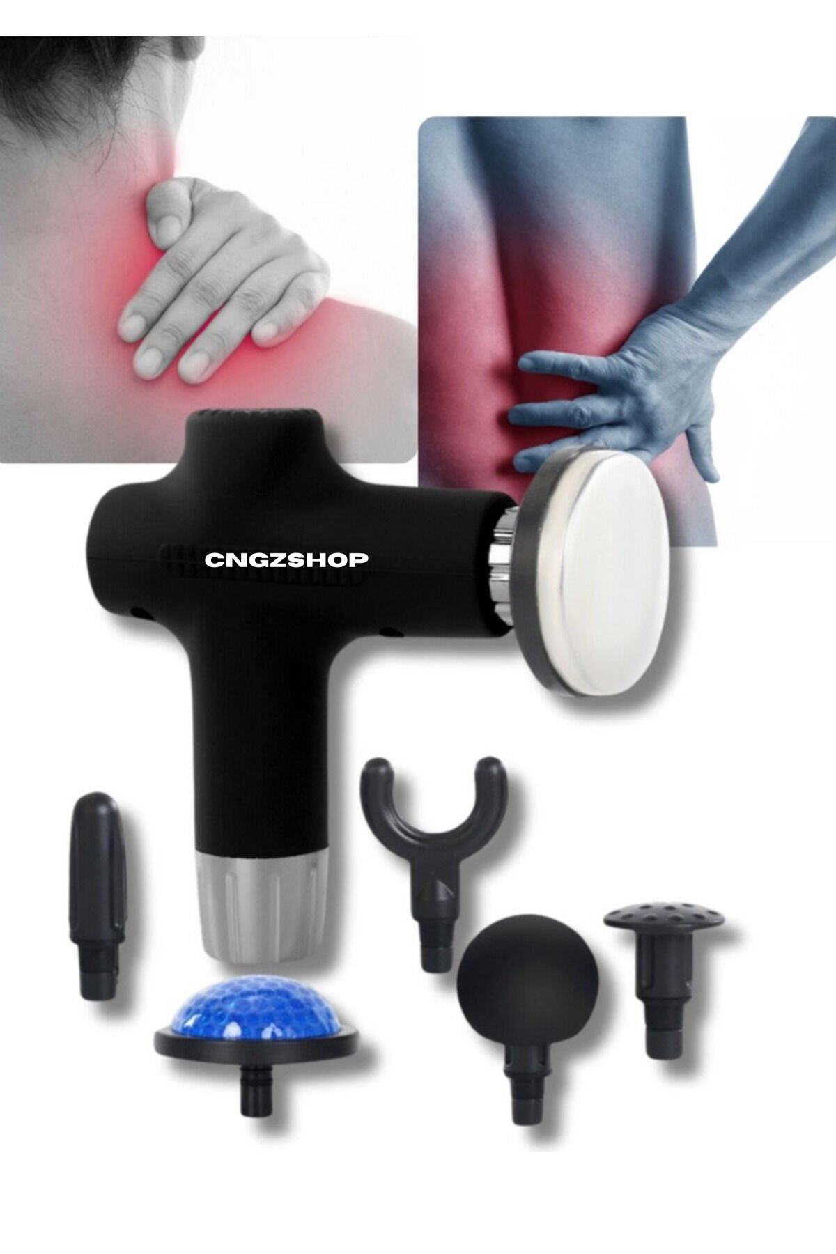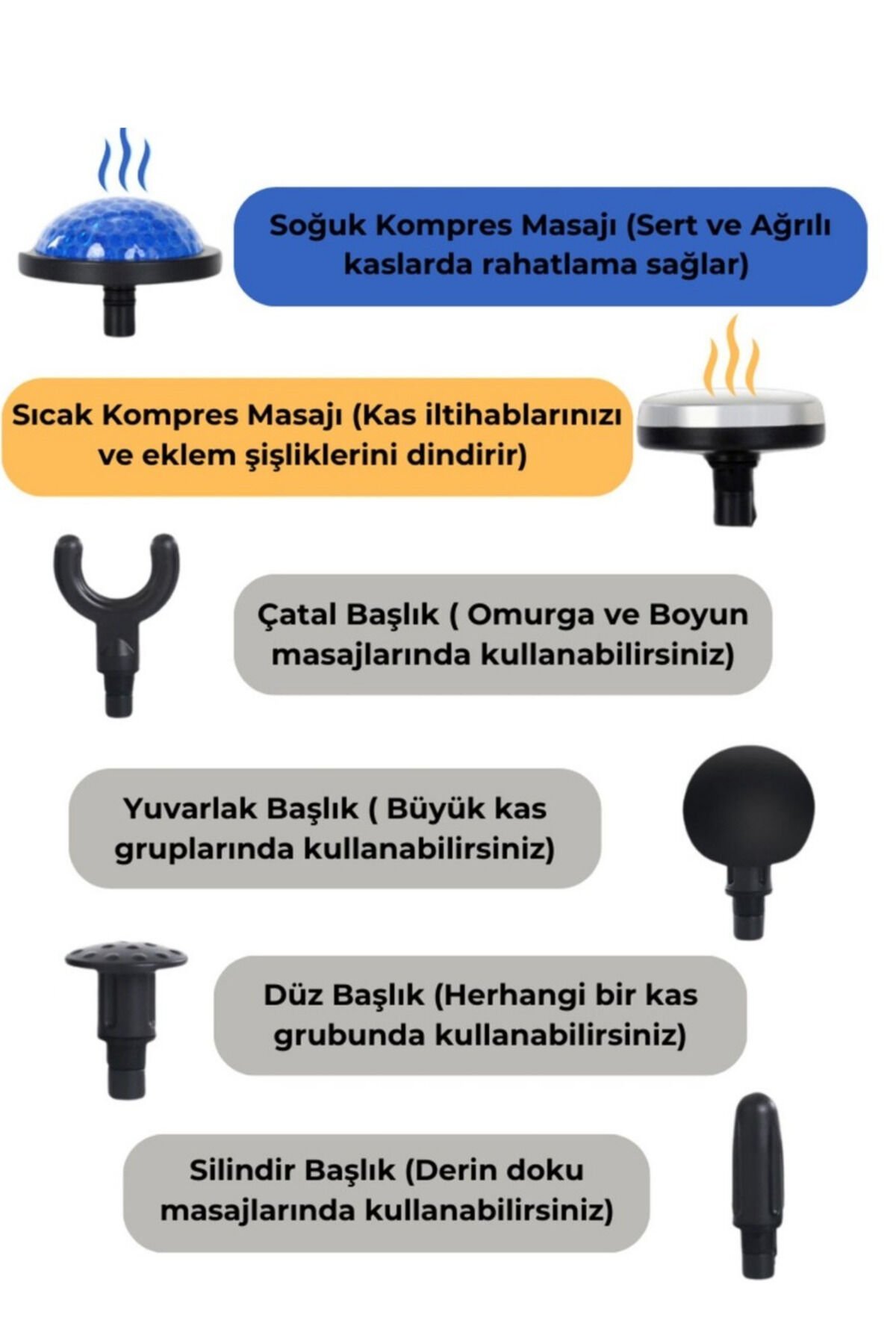 Şarjlı 6 Başlıklı Isıtmalı Sıcak ve Soğuk Terapili Sporcu Masaj Tabancası Derin Vücut Masajı