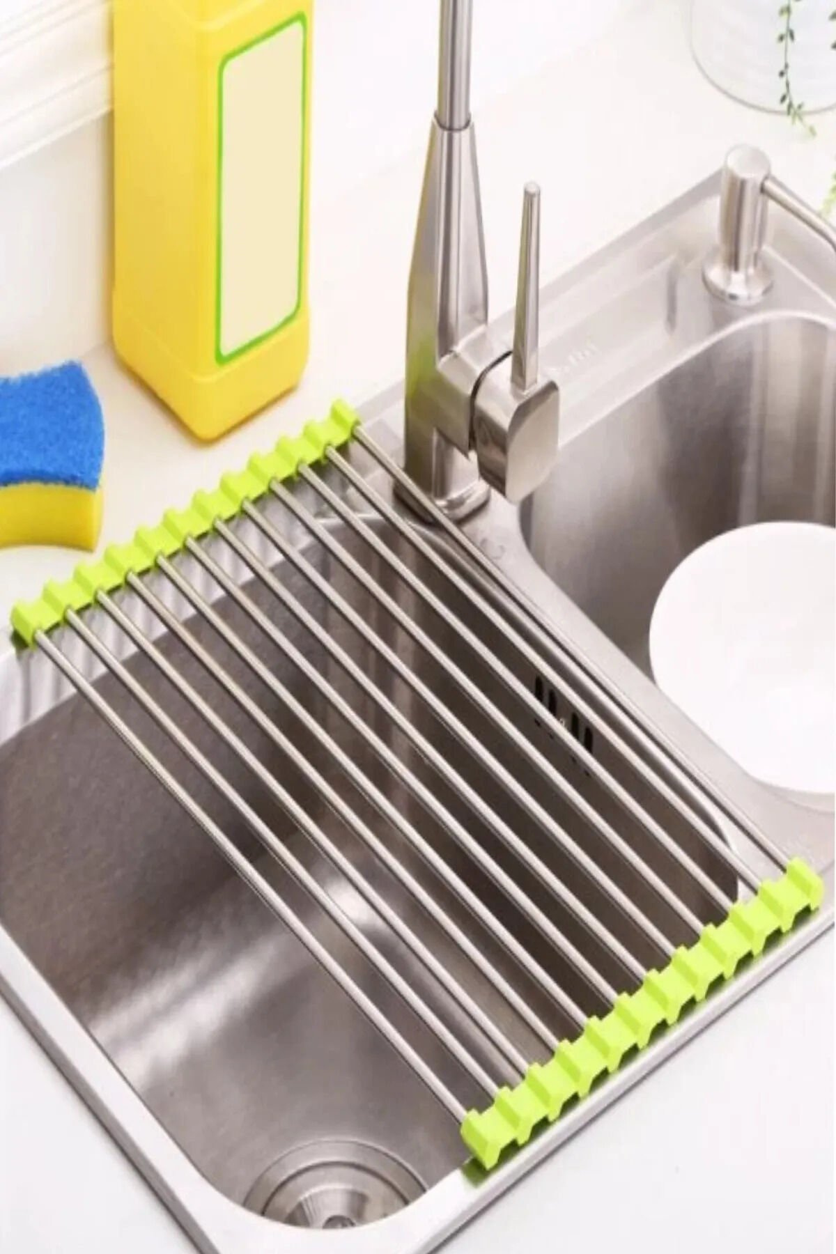 BUFFER Evye Üstü Katlanır Nihale Paslanmaz Çelik Kurutma ve Süzgeç Mutfakta hem yer kazanın hem de işinizi kolaylaştırın! BUFFER katlanabilir evye üstü süzgeç ile sebze, meyve ve bulaşıklarınızı pratik şekilde yıkayıp kurutabilirsiniz.; Paslanmaz çelik telleri ve sağlam plastik kenarları sayesinde hem dayanıklı hem de modern bir görünüme sahiptir.; Katlanabilir Tasarım:Kullanmadığınızda kolayca katlayıp kaldırabilirsiniz.; Doğrudan Drenaj:Su, lavaboya akar mutfak tezgahınız kuru kalır.; Çok Amaçlı Kullanım:Sebze/meyve süzgeci, bulaşık kurutucu veya sıcak tencere altlığı olarak kullanabilirsiniz.; Isı ve Neme Dayanıklı:Uzun ömürlü, güvenli kullanım sağlar.; Farklı Boyut Seçenekleri:Lavabonuz için en uygun modeli tercih edebilirsiniz.; BUFFER kalitesiyle mutfağınızda pratikliğe yer açın!