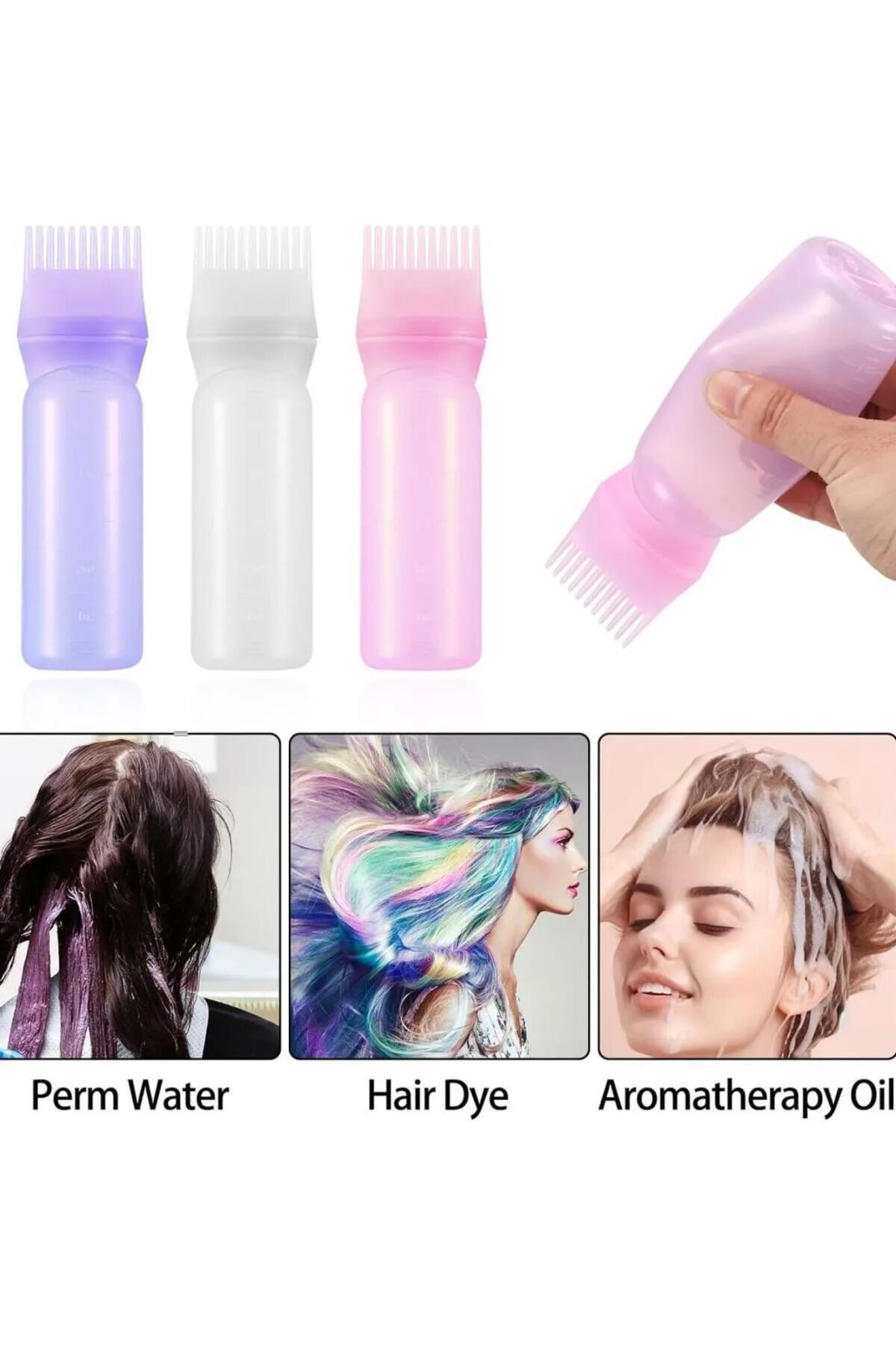 Şeffaf Renk Taraklı Saç Boyama Şişesi Kolay Pratik Saç Diplerine Bakım Yağı Uygulama Aparatı 1 Adet