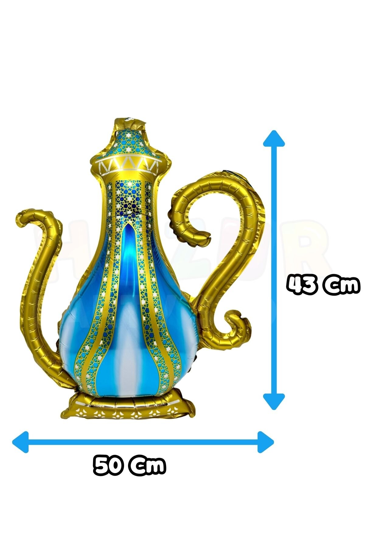 Şerbetlik Ramazan Folyo Balon Parlak 43x50 cm Turkuaz Gold Hoşgeldin Şerbeti İslami İbrik Süsü