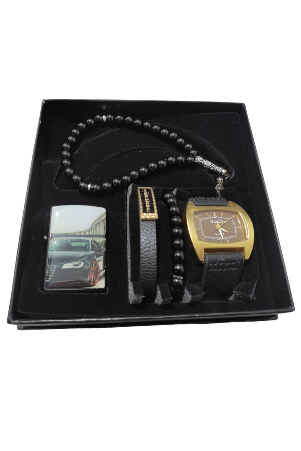 Sevgililer Günü Hediye Seti Saat & 2 Bileklik & Zippo Çakmak & Tesbih Özel Hediye Kutusunda