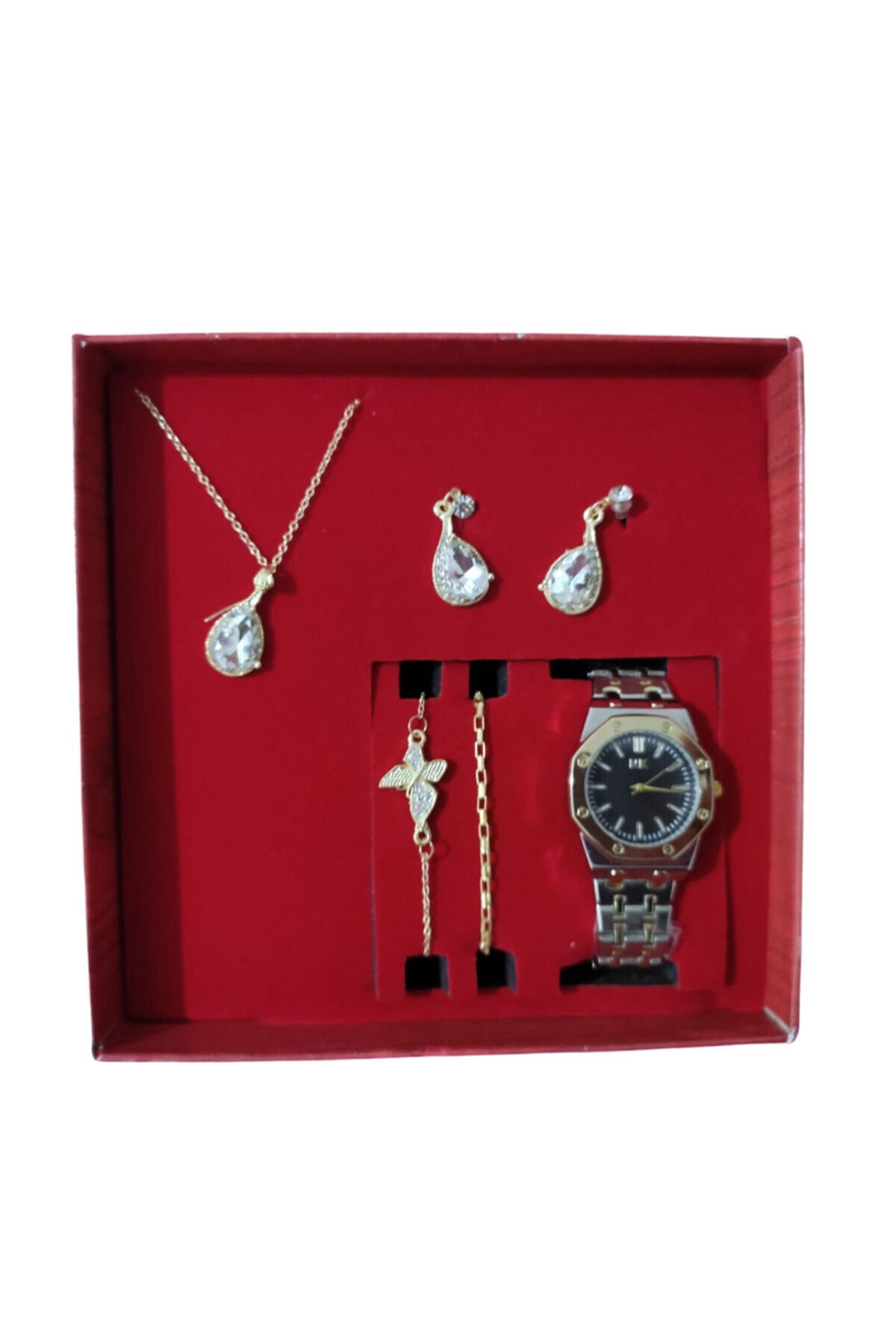 Sevgililer Günü Hediye Seti Saat & İki Bileklik & Kolye & Küpe Özel Hediye Kutusunda
