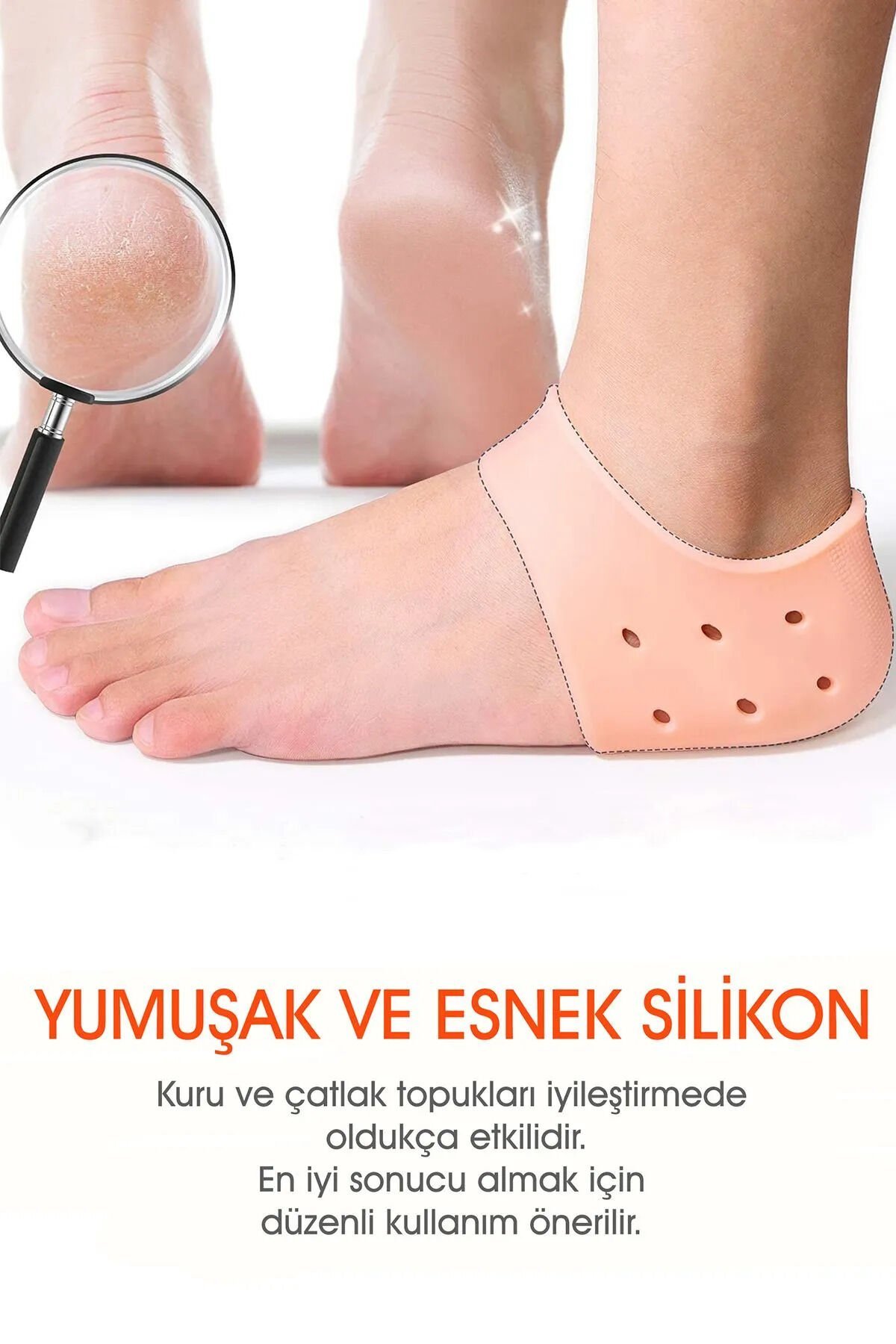 ÜRÜN RENGİ STOK DURUMUNA GÖRE GÖNDERİLECEKTİR.; Sağlık ve hijyen nedeniyle iadesi kabul edilmeyen ürün kategorisindedir.; ; Topuk Gömleği Diken Çorabı Koruyucu Gömlek Tabanlık Silikon Esnek 2li Silikon Topuk ve Bilek Koruyucu Topuk çatlakları ve topuk nasırını önler.; ; Topuklara olan baskıyı azaltır.; ; Bu ürünü topuğunuza nemlendirici krem sürdükten sonra kullandığınızda, nemlendiricinin etkisi artacak, topuk çatlaklarının oluşmasına engel olacaktır.; ; Ayak numaranız kaç olursa olsun esnek yapısı ile tam uyum sağlar.; ; Özellikleri: Yumuşak medikal silikondan üretilmiştir.; ; Toksik madde içermez.; ; Ilık su ve sabunla elde yıkanabilir.; ; (Ömrünün uzun olabilmesi için güneşte kurutmayınız).; ; Boyutu: Yaklaşık 10cm x 9,5cm Kalınlık: Yaklaşık 3mm Paket İçeriği:1 ÇİFT T opuk Koruyucu Silikon çorabı gönderilecektir.;