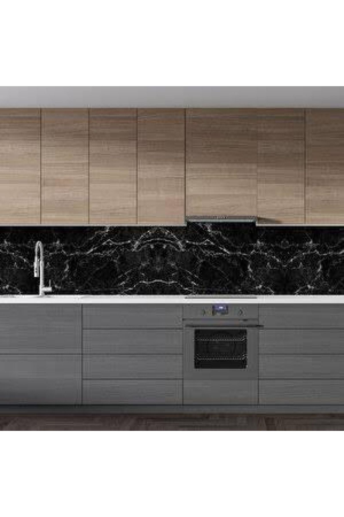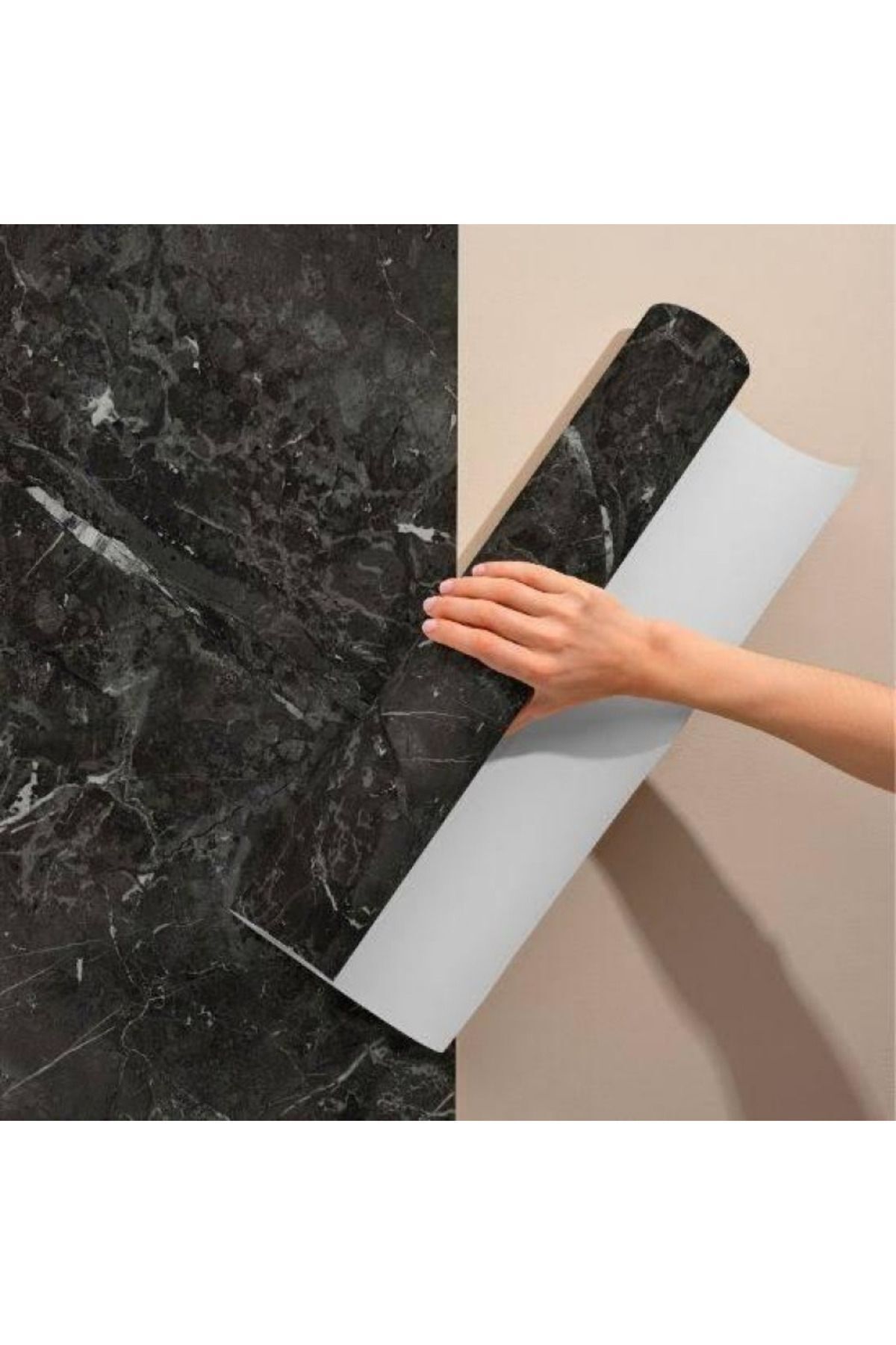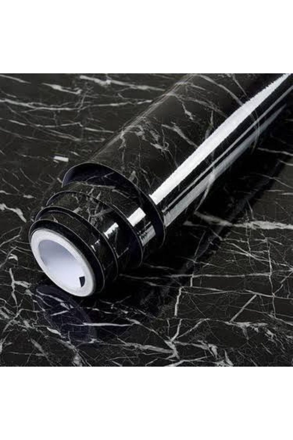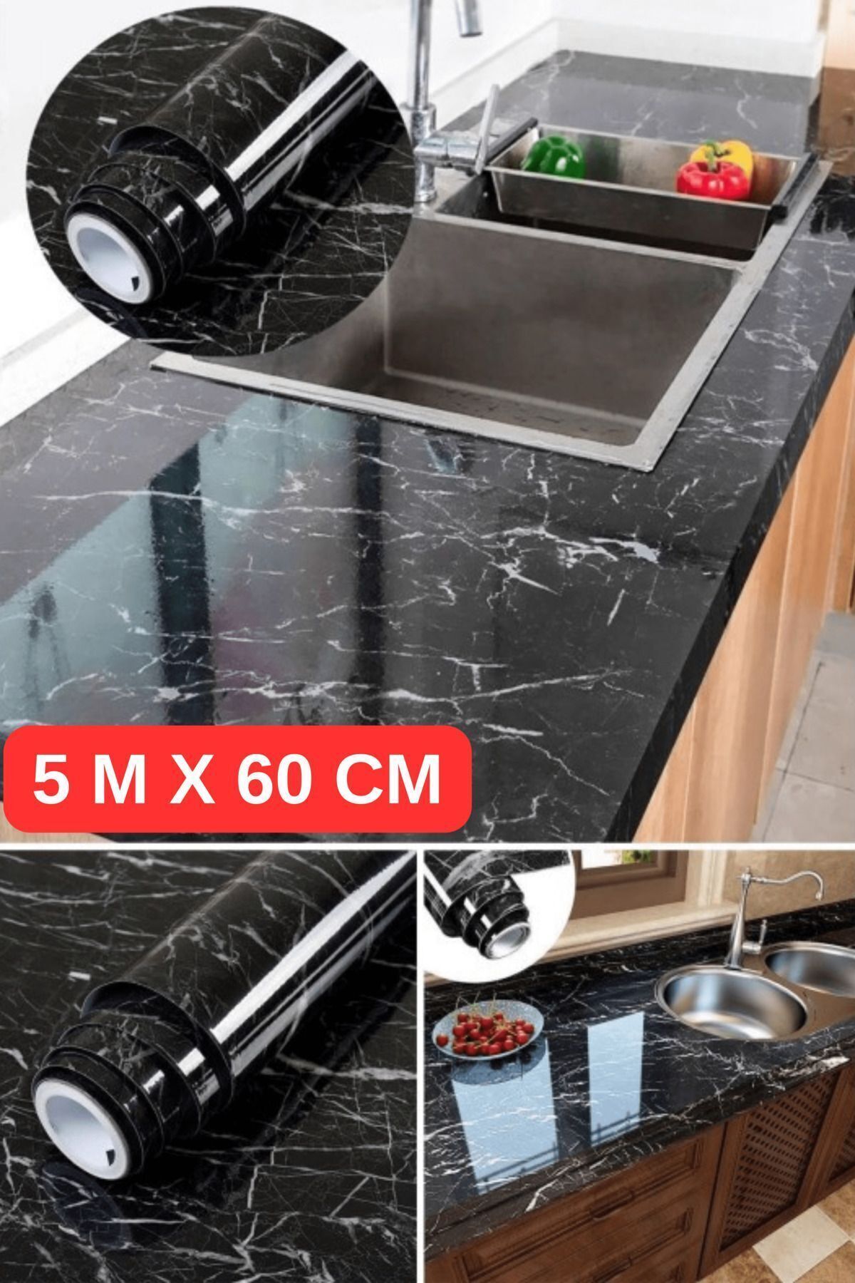Siyah Mermer Desenli Yapışkanlı Kaplama Kağıt Tezgah Dolap Mutfak Kağıdı Su Geçirmez 5 m x 60 cm