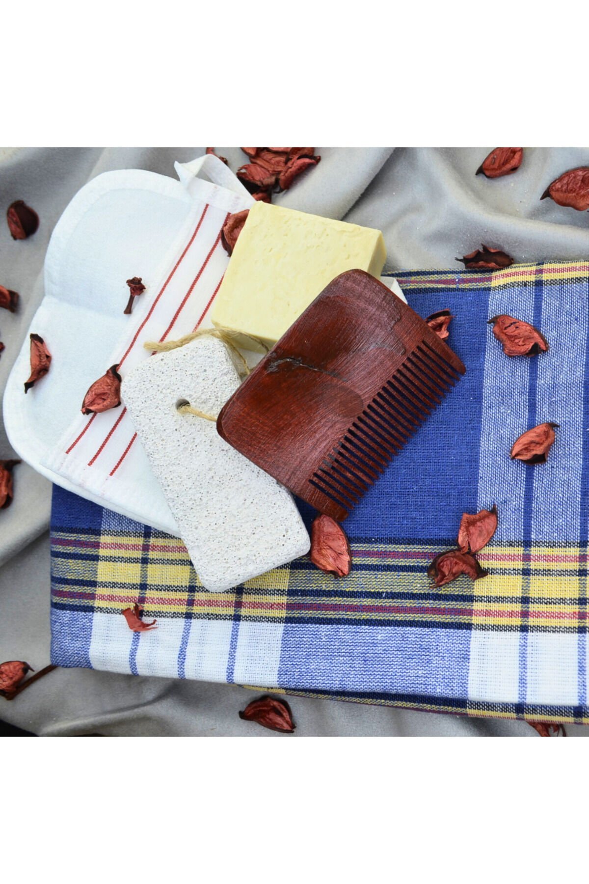 Hamam Seti: Geleneksel Rahatlama ve Şıklık Hamam deneyiminin keyfini evinize taşımanız için mükemmel bir fırsat sunuyoruz. Kadınlar ve erkekler için tasarlanmış bu özel hamam seti, geleneksel Türk hamamının tadını çıkarmak isteyen herkes için idealdir. İçeriğinde bulunan özenle seçilmiş ürünler, size sadece bir hamam değil, aynı zamanda lüks bir rahatlama deneyimi sunar. Set İçeriği: Tarak:Yüksek kaliteli ahşap malzemeden üretilmiş bu tarak, saç bakımınızı ve saç taramanızı kolaylaştırır. Kadınların uzun saçlarından erkeklerin kısa saçlarına kadar herkes için uygundur. Kese:Doğal pamuk ipliklerinden üretilmiş bu kese, cildinizi nazikçe temizler ve ölü deriyi arındırır. Geleneksel Türk hamamının olmazsa olmazlarından biri olan kese, cildinizi canlandırır. Peştemal: 70x180 cm boyutlarındaki bu hafif ve hızlı kuruyan peştemal, hem kadınlar hem de erkekler için mükemmel bir seçenektir. Duş sonrası veya hamam sonrası rahatlığı sunar. Sabun:Doğal ve el yapımı sabun, cildinizi temizlerken nemlendirir. Hamam deneyiminizin vazgeçilmez bir parçasıdır. Topuk Taşı:Özel olarak tasarlanmış doğal volkanik taştan üretilmiş olan topuk taşı, ayak tabanlarınıza ve topuklarınıza rahatlatıcı bir masaj yapar. Ayaklarınızın günün yorgunluğunu atmasına yardımcı olur. Bu özel hamam seti, hamamın geleneksel rahatlatıcı atmosferini evinize getiriyor ve size şıklık ve konfor sunuyor. Kendiniz veya sevdikleriniz için mükemmel bir hediye seçeneği olan bu set ile keyifli anlar yaşayabilirsiniz. Neden Biz? Yüksek Kalite: Ürünlerimiz yüksek kaliteli malzemelerden üretilir ve uzun ömürlüdür. ; Geleneksel Deneyim: Geleneksel Türk hamamı deneyimini evinize getirin. ; Hem Kadınlar Hem de Erkekler İçin: Setimiz hem kadınlar hem de erkekler için uygundur. ; El Yapımı Sabun: Doğal ve el yapımı sabun cildinizi nazikçe temizler. ; Hamam setimiz, sadece bir hamam deneyimi değil, aynı zamanda lüks bir rahatlama deneyimi sunar. Şimdi sipariş verin ve geleneksel hamam deneyiminin keyfini çıkarın!