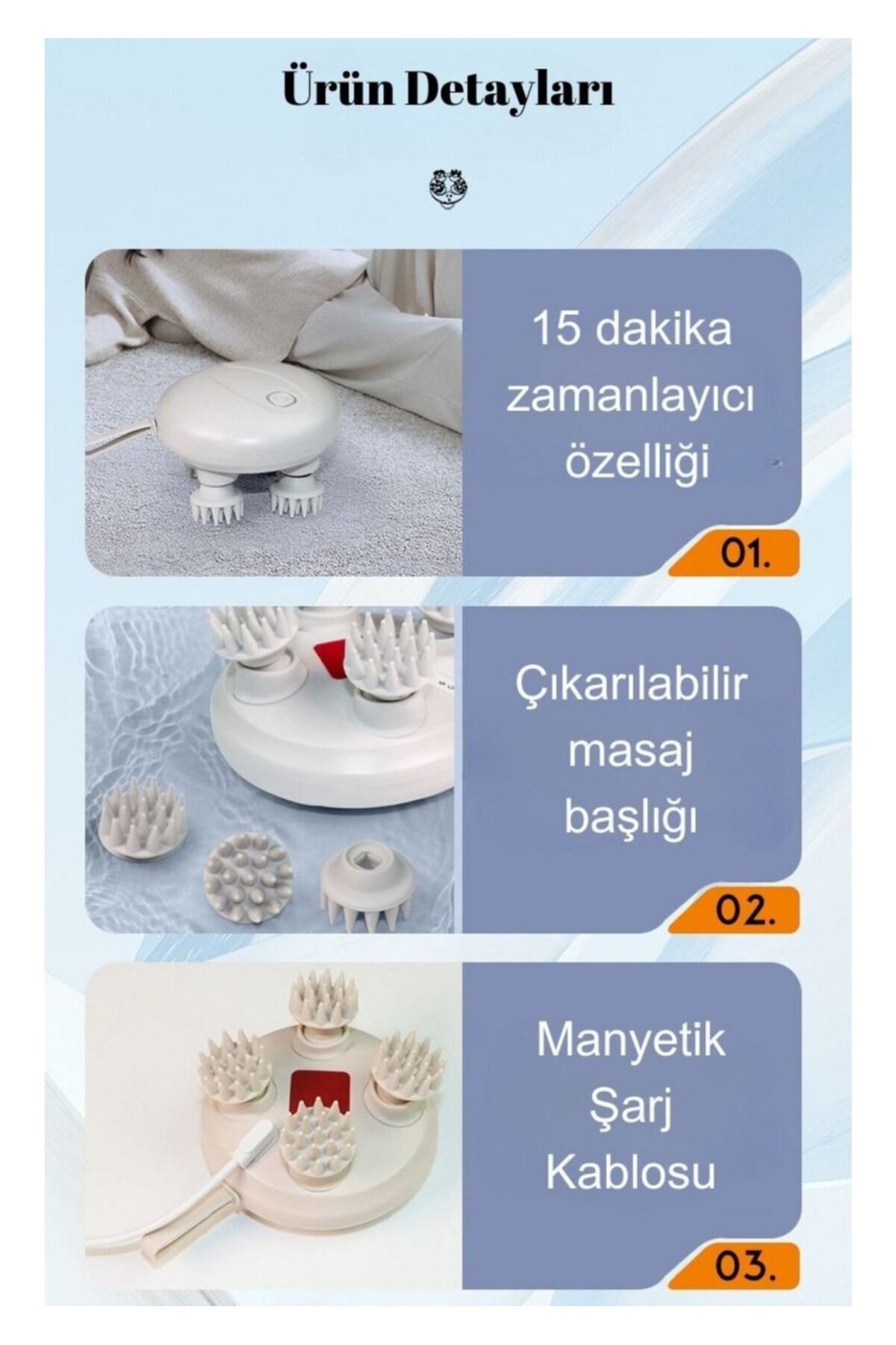 Taşınabilir Şarjlı Su Geçirmez Kafa Bel Boyun Sırt Ayak Tüm Vücut Saç Derisi Masaj Aleti