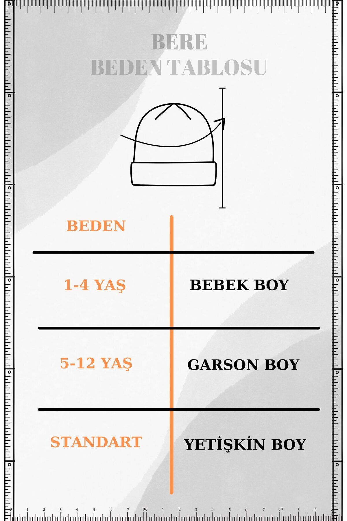 İncelediğiniz bu ürün kadın,erkek,çocuk ve bebek kullanımı için uygundur.; 20/1 iplik kaşkorse ribana penye bere esnek ve yumuşak çift katlı kumaştan üretilmiştir. ; Rüzgar geçirmez.; Baskı boyutu 5-6 cm dir.; 1 - 4 Yaş : Bebek Boy; 5 - 12 Yaş : Garson Boy; Standart : Yetişkin Boy; Baskılarımız yıkamaya dayanıklı olup, 30 derecede iç-dış ters çevrilerek yıkandığı takdirde, çatlama veya dökülme yapmaz. Baskının zarar görmemesi için baskılı yüzeyi ütülemeyiniz. Sadece ters çevirerek ütüleyiniz. Maksimum 30 derecede iç-dış ters çevirerek yıkamalısınız. Pamuklu tüm tekstil ürünlerini 30 dereceden yüksek sıcaklıkta yıkamamak ürünün ve üzerindeki baskının ömrünü uzatır. Yüksek sıcaklıkta yıkanmış giysiniz ve üzerindeki baskı yıpranabilir. Giysinizin deforme olmaması ve diğer çamaşırlardan leke alabileceği ihtimaline karşın aynı renge sahip giysilerle birlikte, ters çevirerek yıkayınız. Giysinizi çamaşır makinesine nemli şekilde koymayınız. Yoğunlaştırılmış kimyasal içeren deterjanlar kullanmamaya özen gösteriniz. Bu deterjanların yanlış miktarlarda kullanılması, giysinizin ve üzerindeki baskının ömrüne etki edebilir. Çamaşır suyu kullanmayınız. Açık havada ve ipe asılarak kurulanması tercih edilir. Kuru temizleme yaptırmayınız. Hafif nemli iken ütülemenizi tavsiye ederiz.; Görsellerde yer alan bere harici ürünler fiyata dahil değildir.;