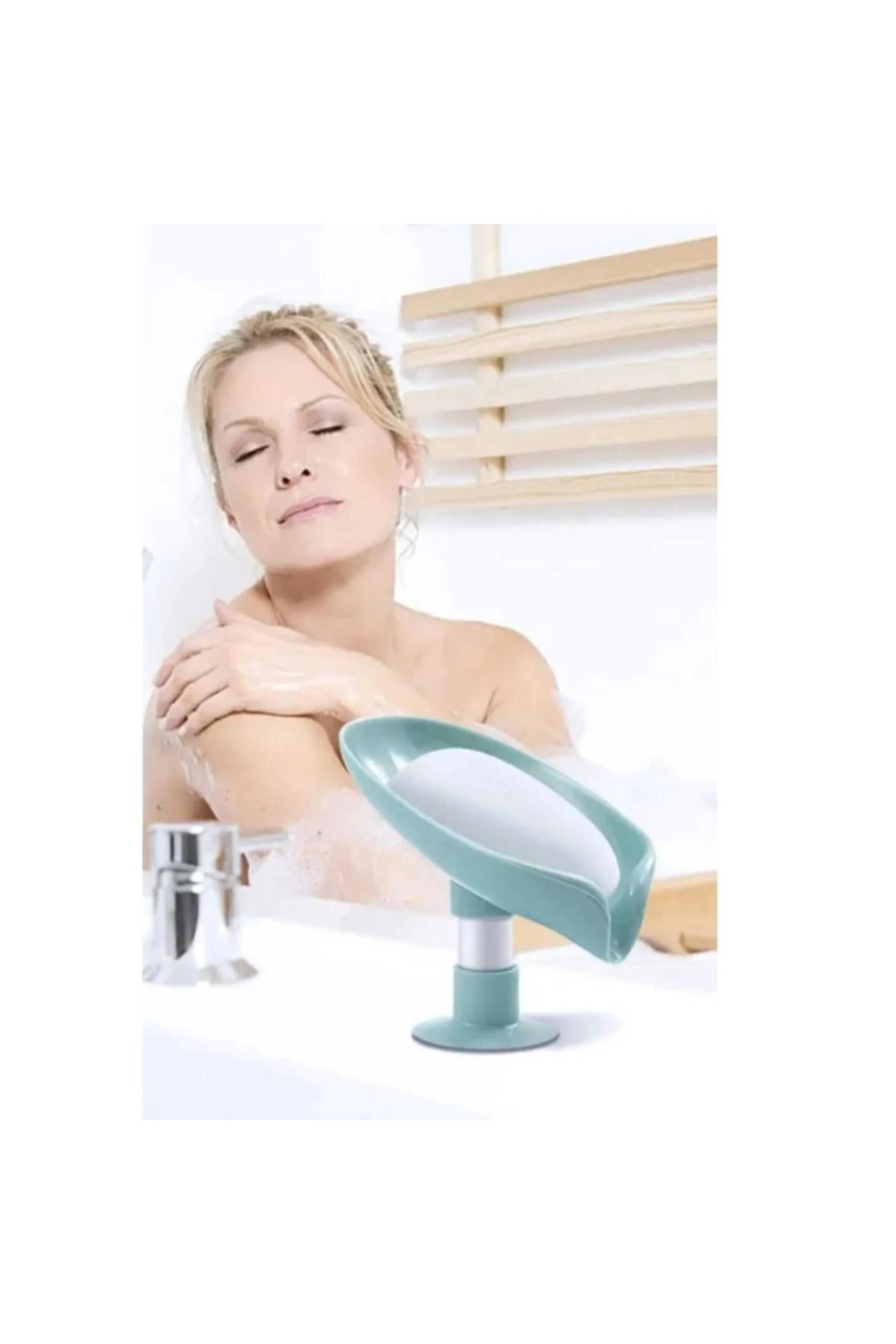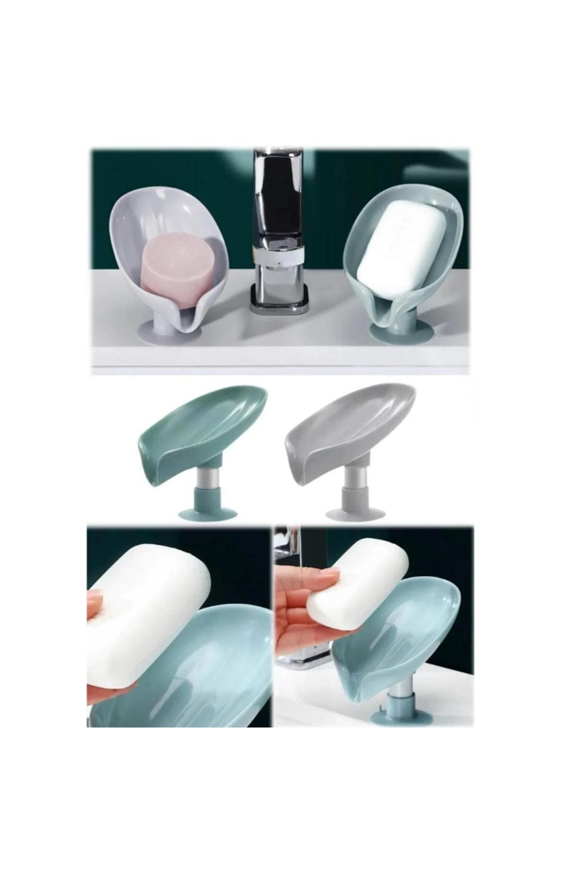 Vantuzlu Sabunluk Su Giderli Gri, Yaprak Şeklinde, Plastik, Sabunluk, Mutfak, Banyo Için