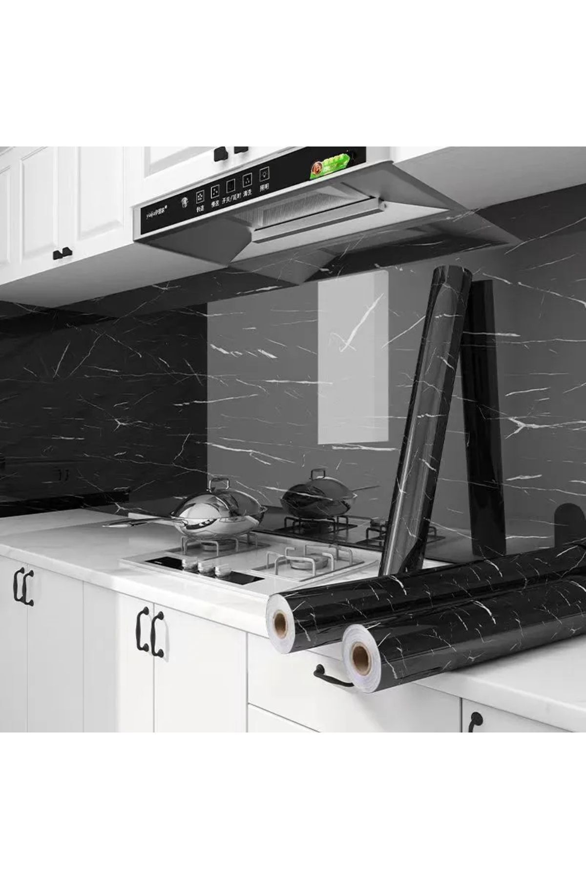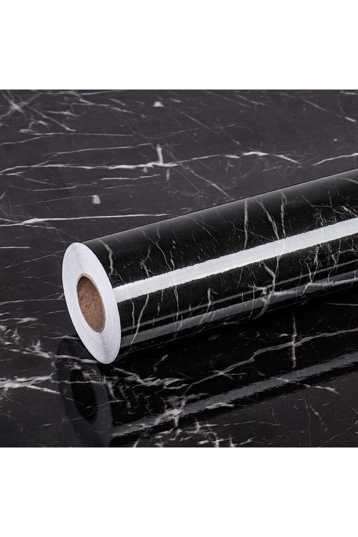 Yapışkanlı Folyo Dolap Masa Tezgah Kaplama Folyosu Siyah Mermer Desenli Folyo 5 Metre × 60 Cm