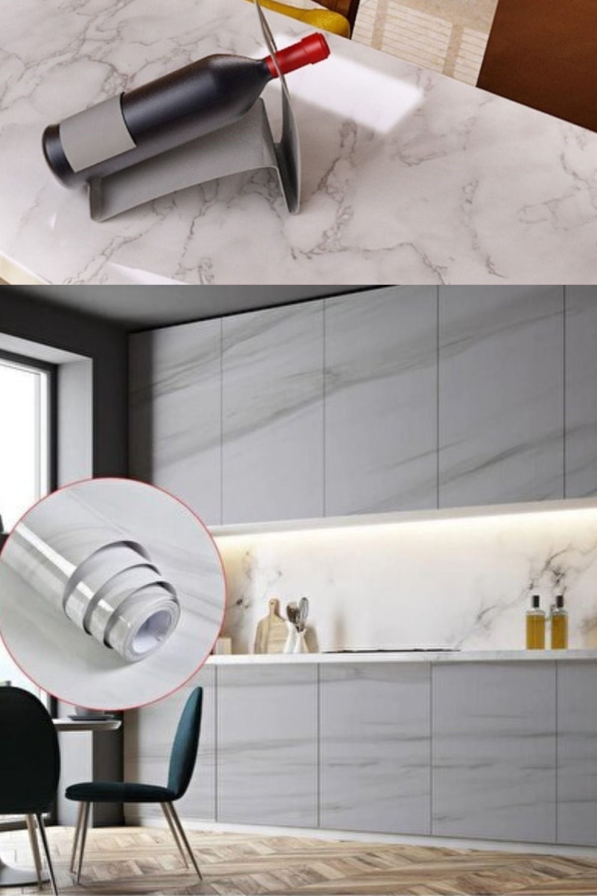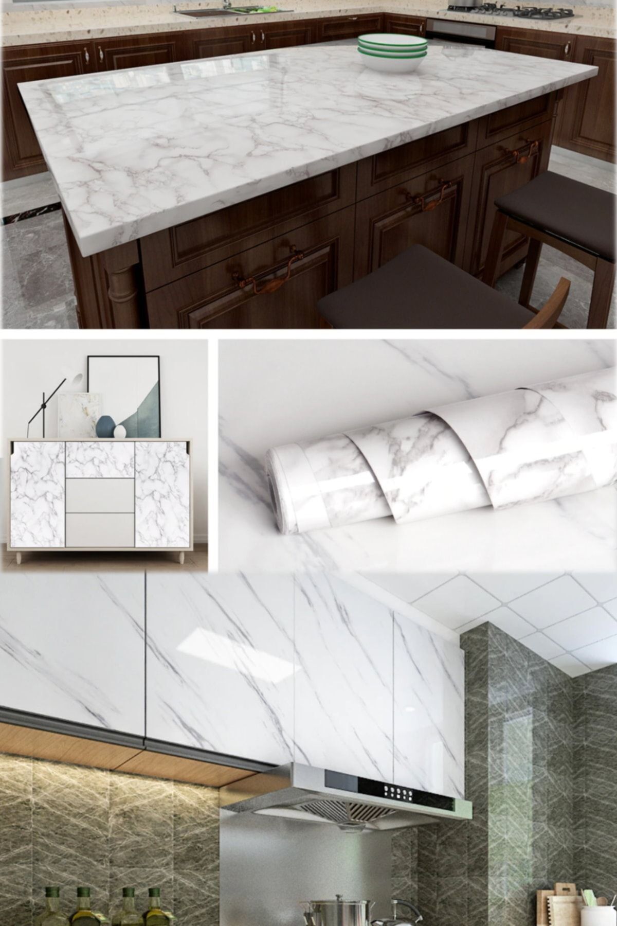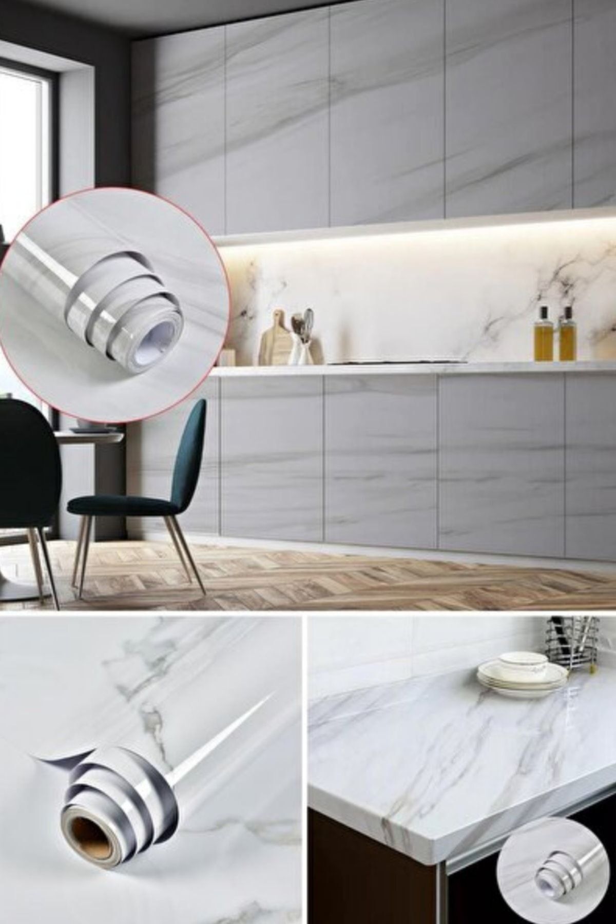 Yapışkanlı Mermer Görünümlü Masa Tezgah Dolap Mutfak Banyo 5 Metre X 60 Cm Mermer Folyo Kağıt Beyaz