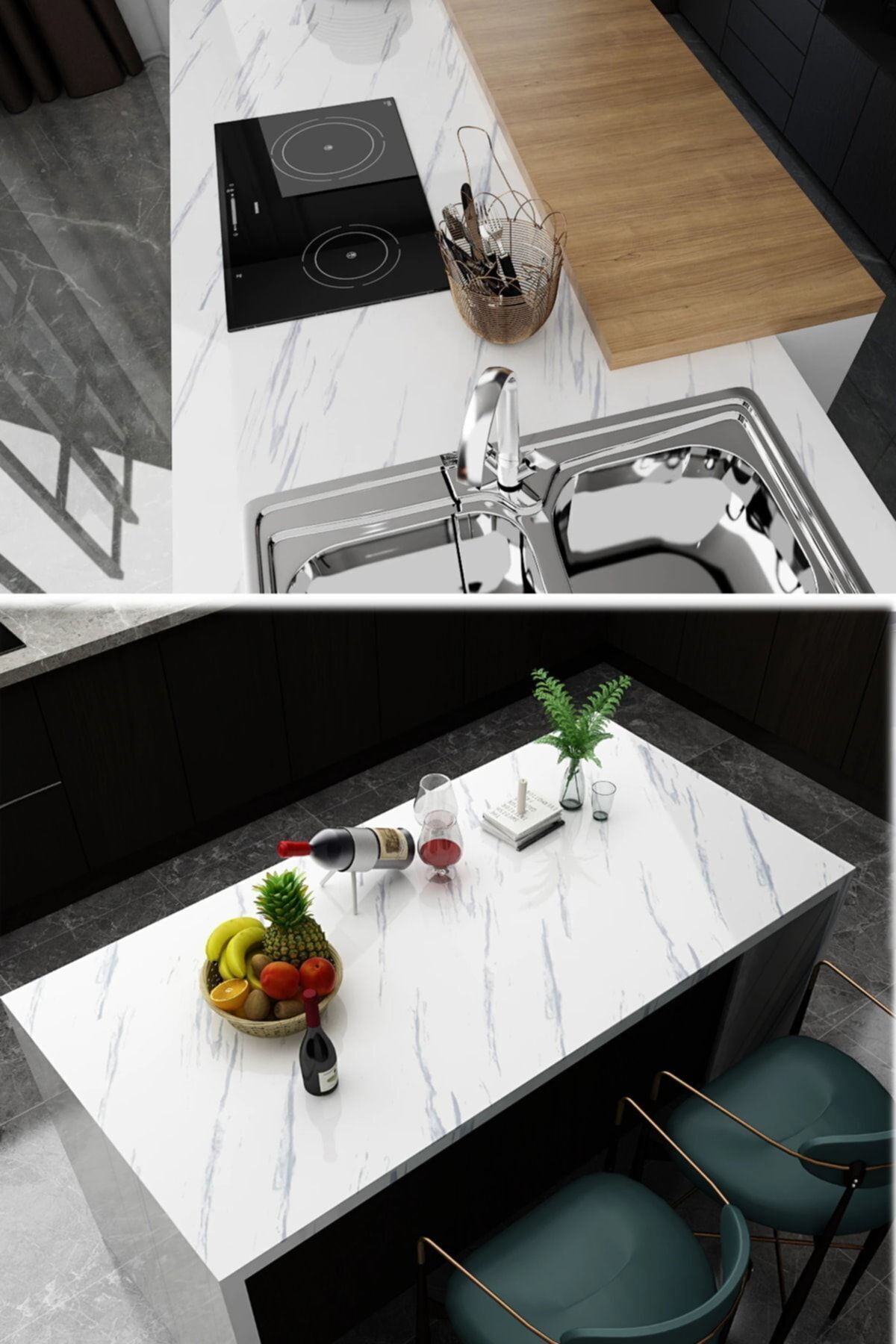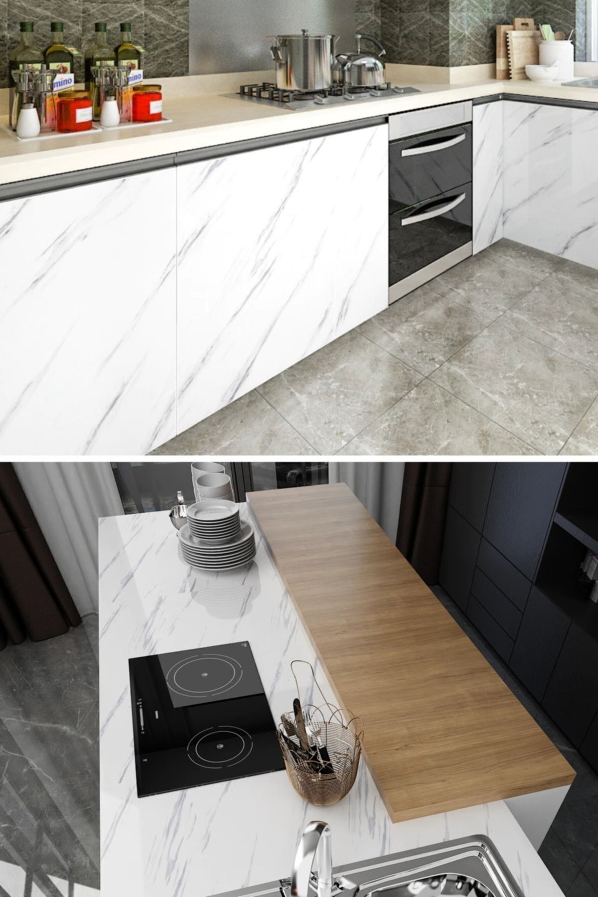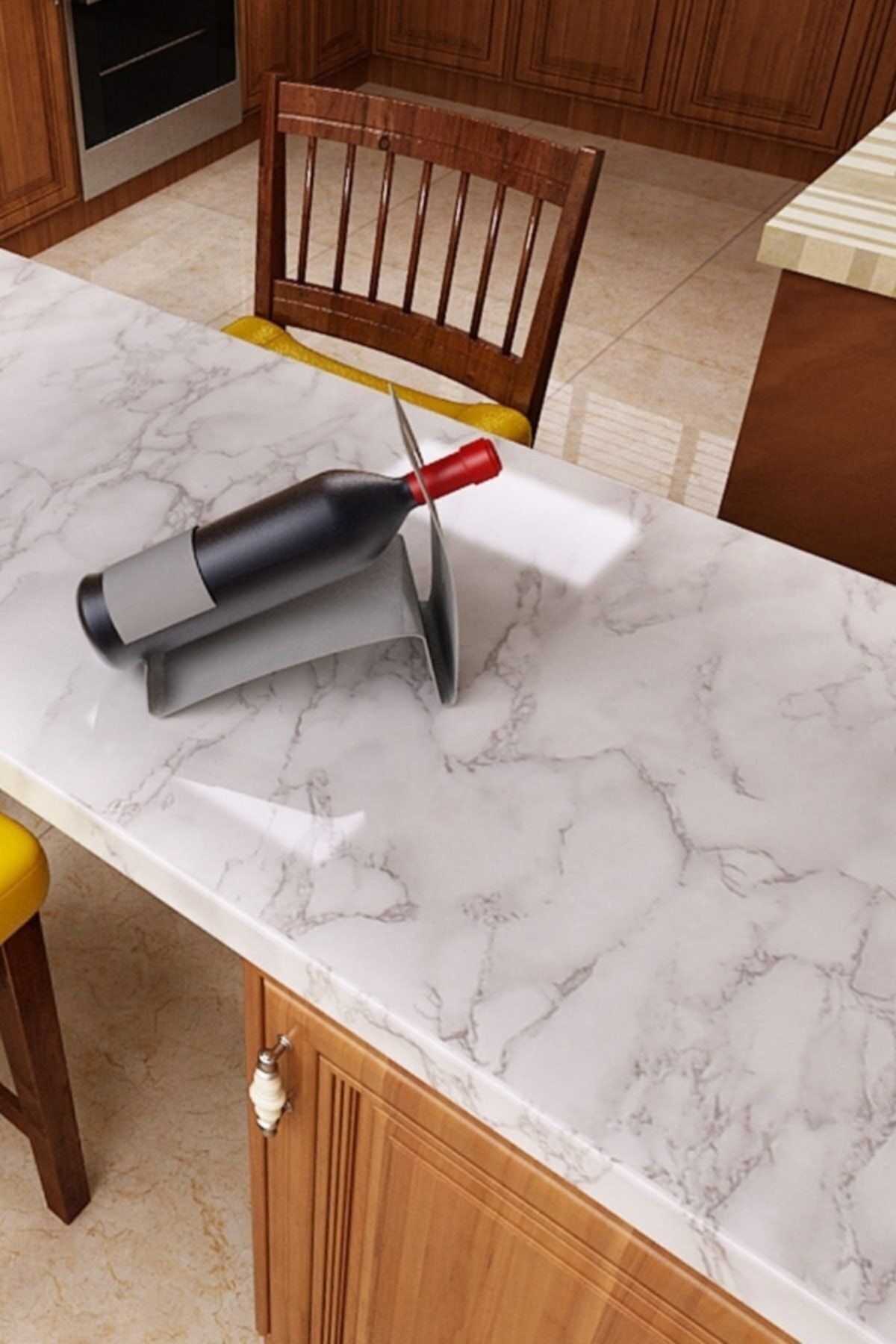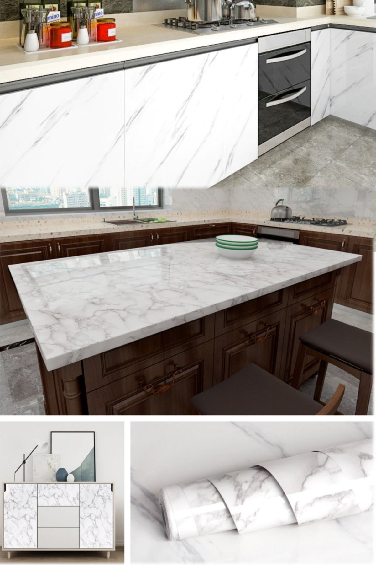 Yapışkanlı Mermer Görünümlü Masa Tezgah Dolap Mutfak Banyo 5 Metre X 60 Cm Mermer Folyo Kağıt Beyaz