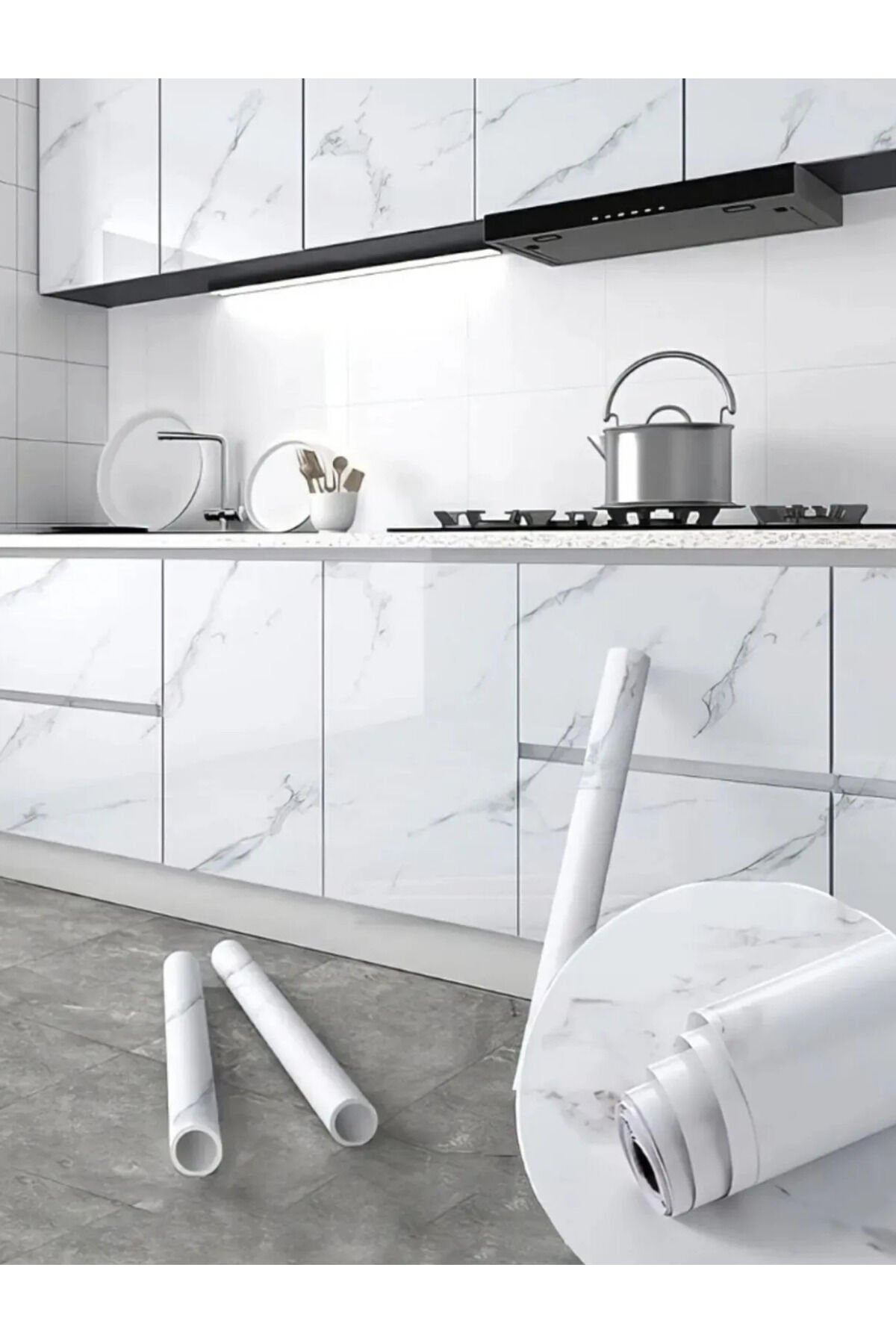 Yapışkanlı Mermer Görünümlü Masa Tezgah Dolap Mutfak Banyo 5 Metre X 60 Cm Mermer Folyo Kağıt Beyaz