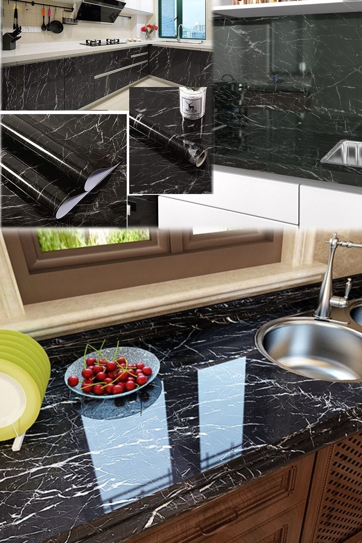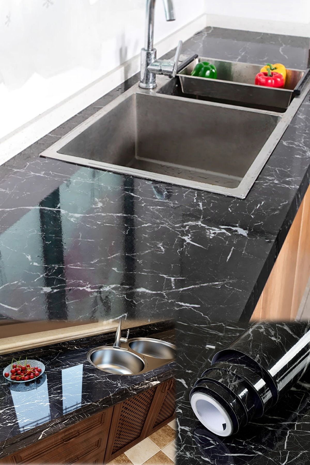 Yapışkanlı Siyah Mermer Desenli 500 X 60 Cm Dekoratif Sitcker Folyo Yanmaz Çizilmez Iz Yapmaz Tezgah