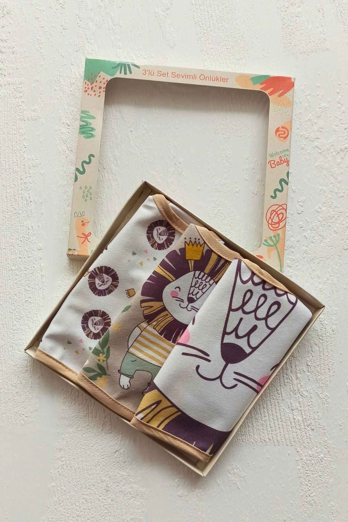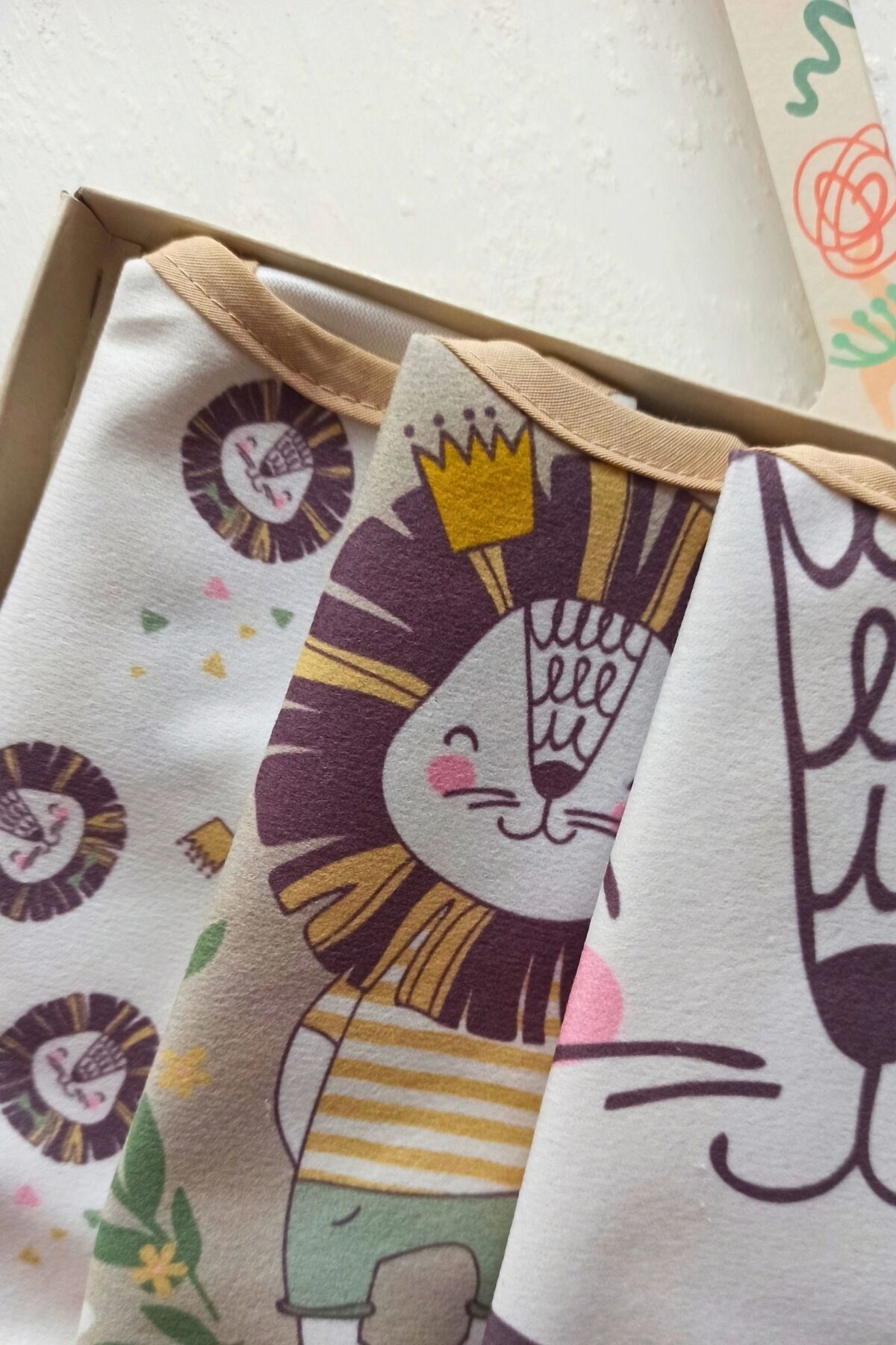 Yeni Kaplan Temalı Kare 3 Parça Microfiber Mama Önlüğü Kendi Kutusunda (su Geçirmez) Çıtçıtlı