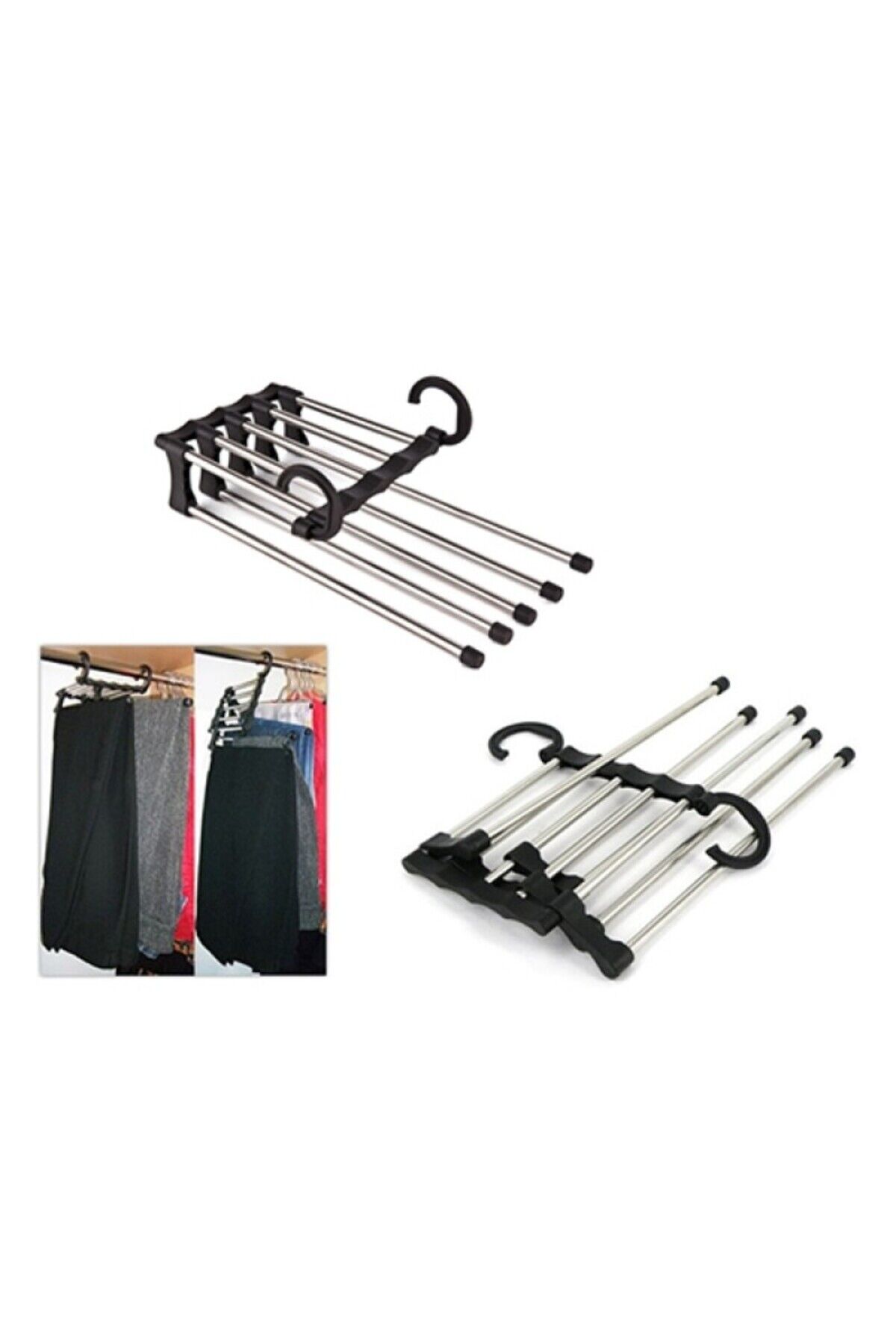 Yeni Nesil Yatay Ve Dikey Kullanım Yüksek Ölçüde Alan Tasarrufu Hareketli Pantolon Askısı 5 İn 1